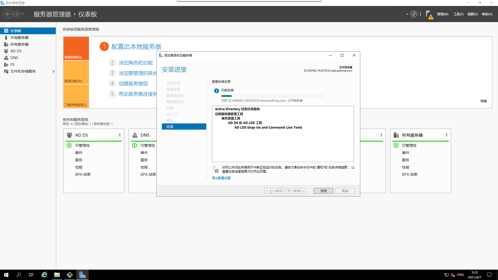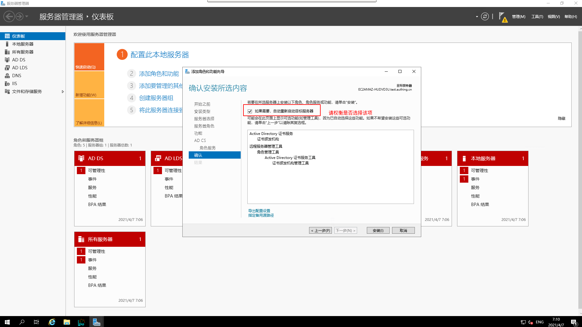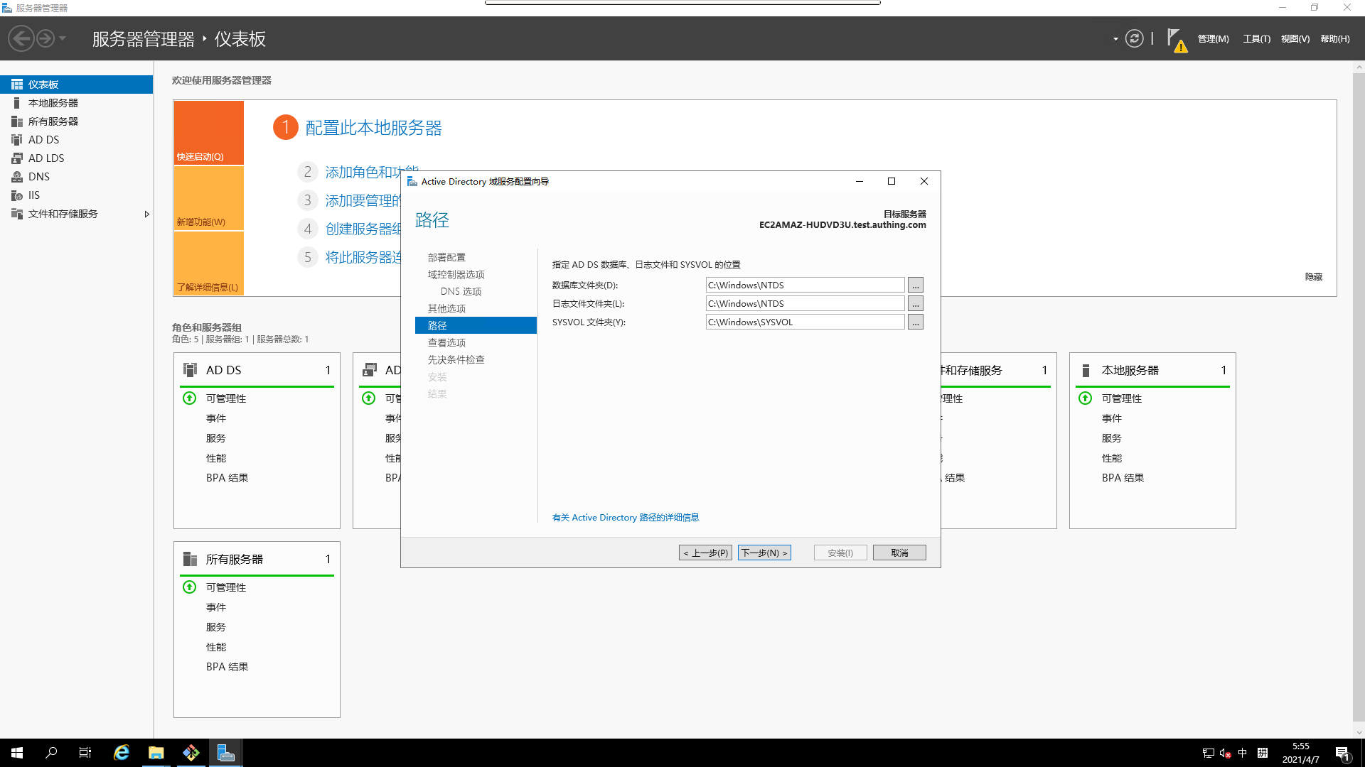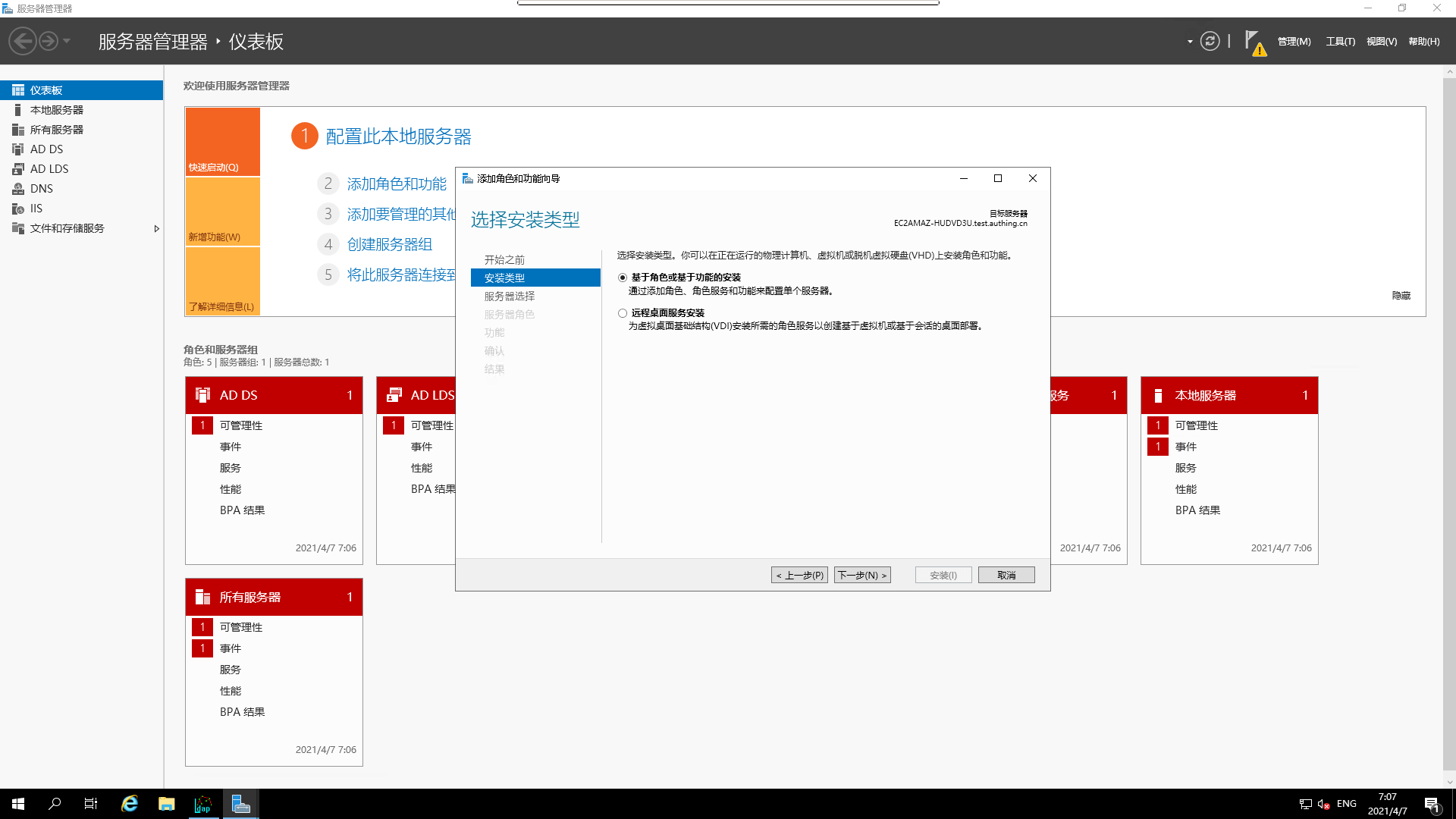 配置 AD 域服务的安装, 此处只是提供安装过程, 以及需要注意的点。