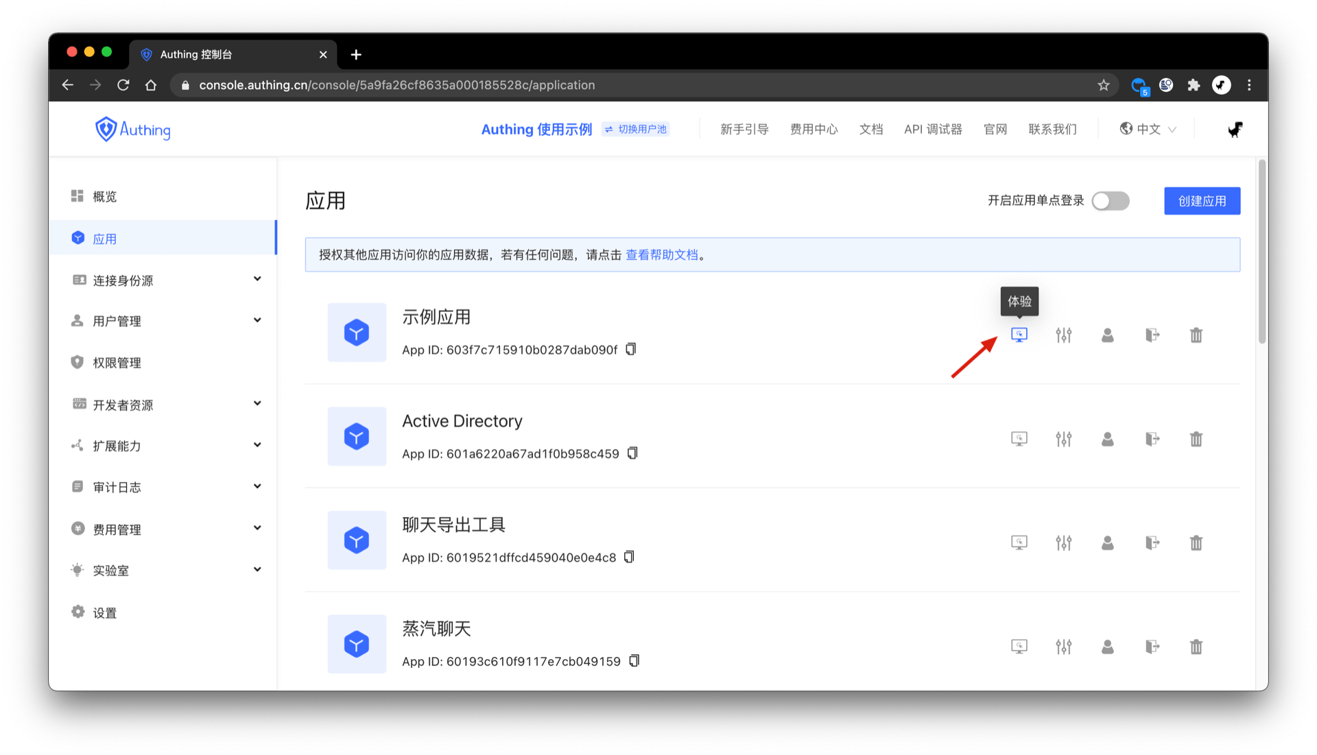 You can check all owning application under Applications tab in console (opens new window):
