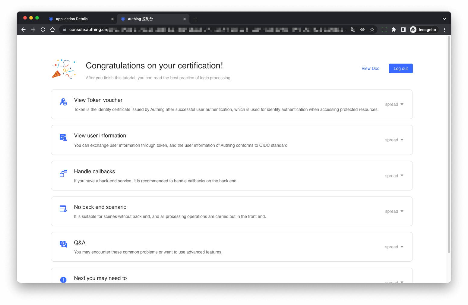 After login success, it will redirect to the application callback address: