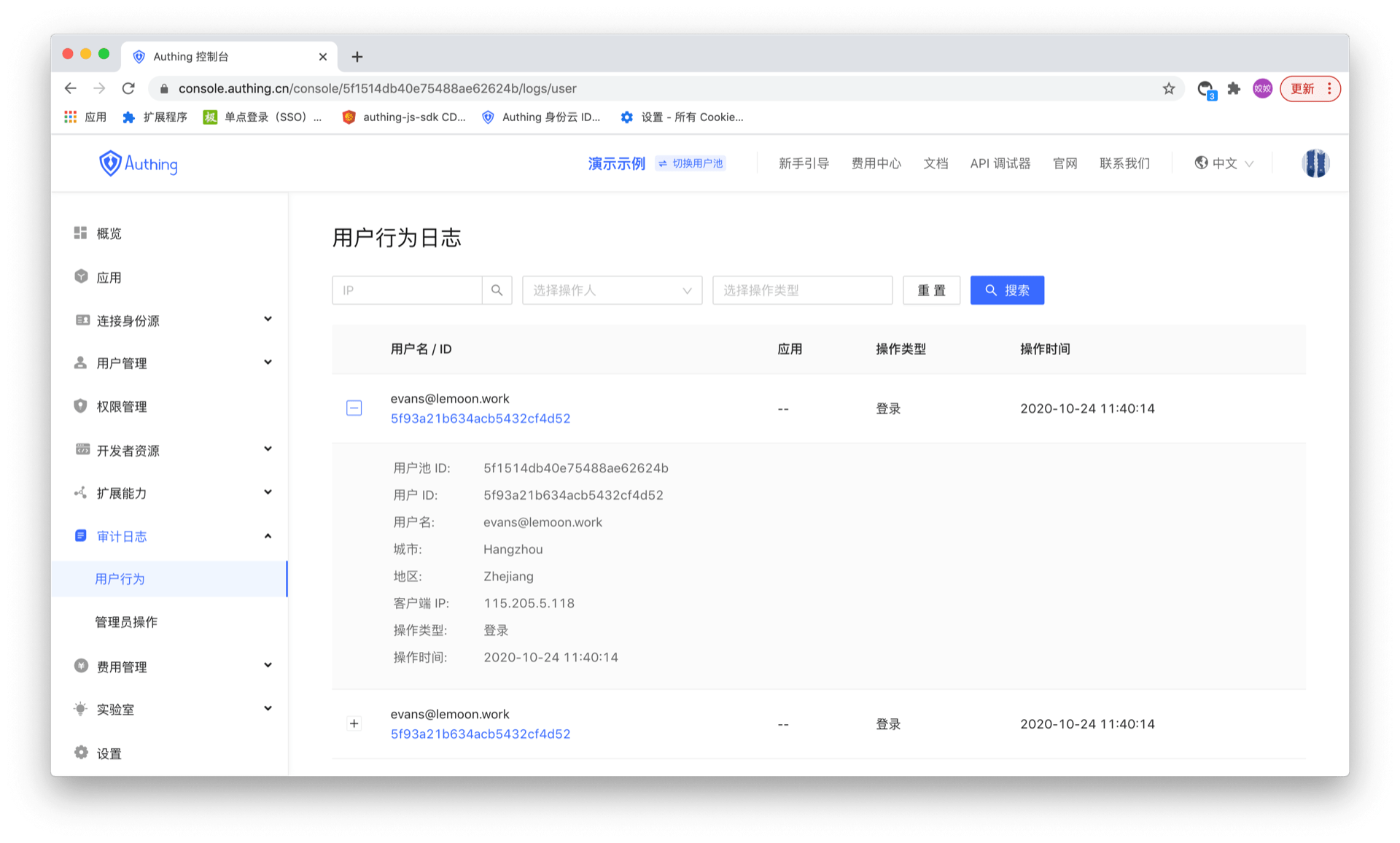 Common user behavior audit mainly consists of user's login/logout and other operation records.