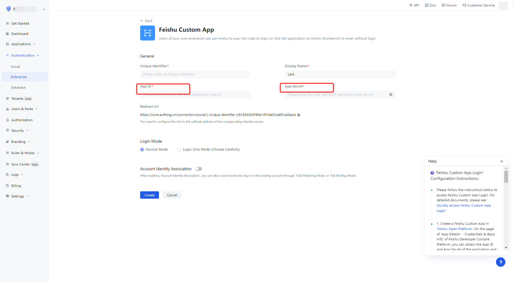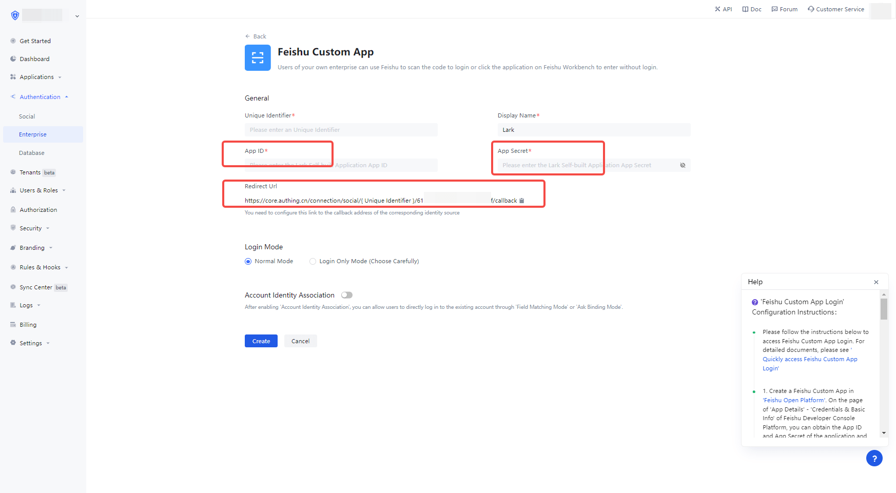 - Overview: Feishu Custom App is suitable for your own enterprise PC website sweep login and Feishu Workbench no-login scenario. For enterprises to achieve secure login to third-party applications or websites with Feishu as the identity source. In Authing, you can configure and turn on the enterprise login of Feishu Enterprise custom Application to quickly get the basic open information of Feishu and help users to achieve password-free login through Authing.