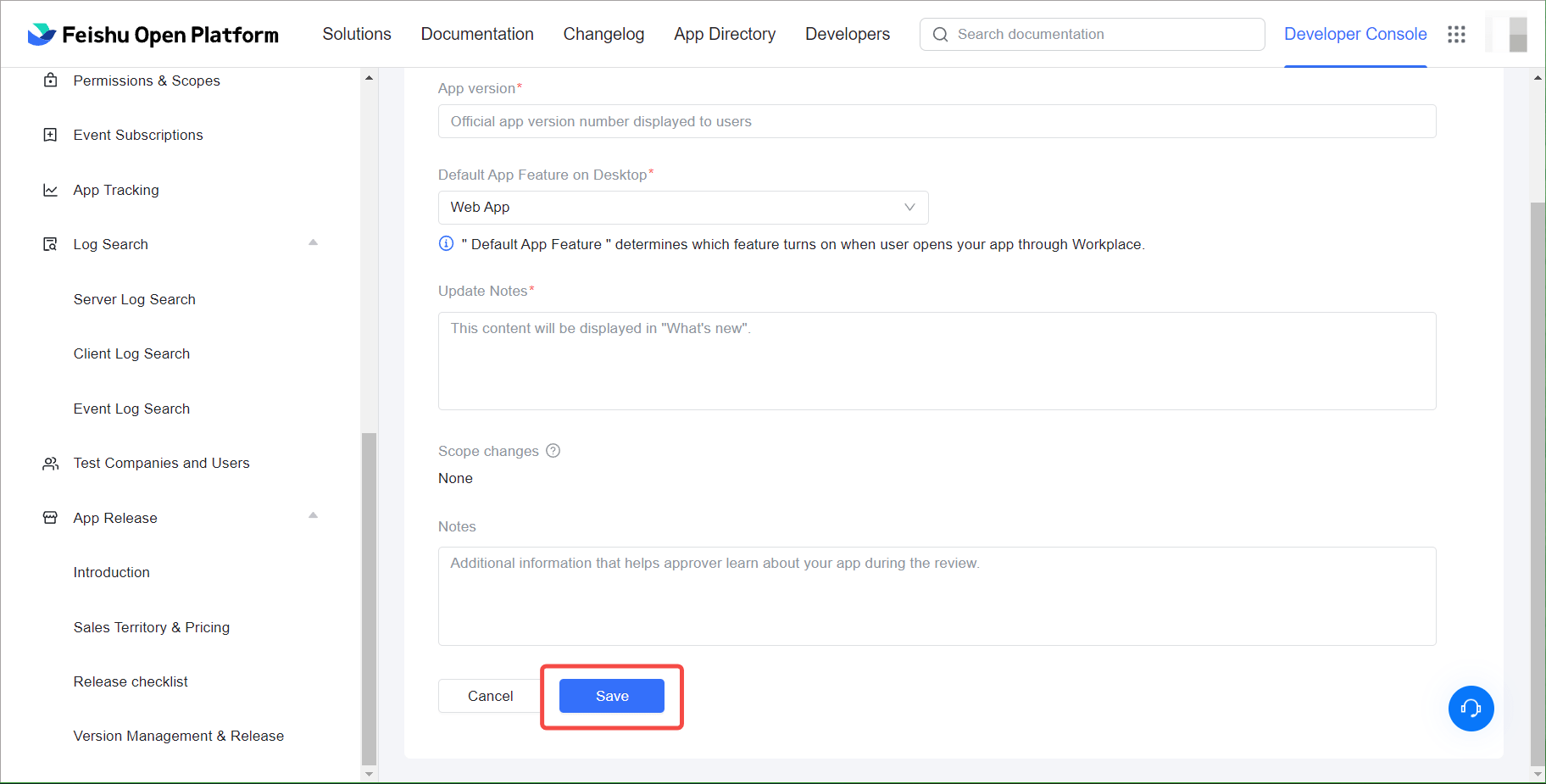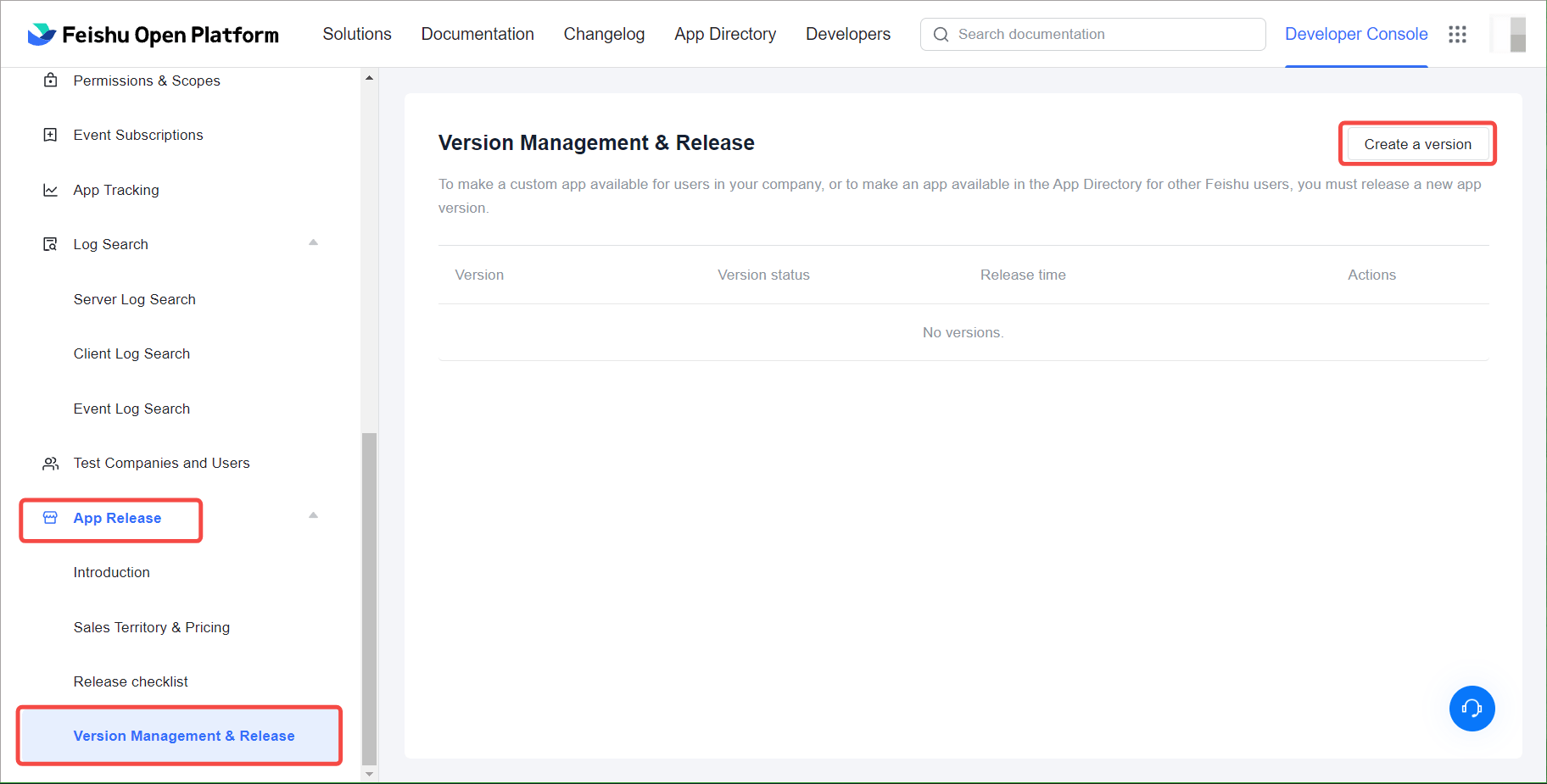 3.1 In Feishu Open Platform, select app publishing, in Version Management & Release, click Create a version, and publish the created app