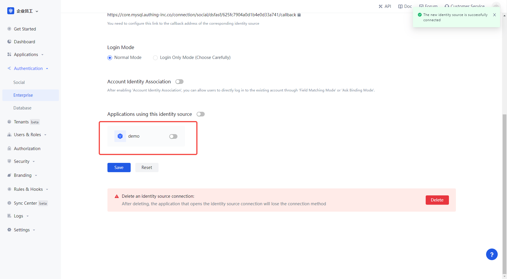 | Account Identity Association | When "Account Identity Association" is not enabled, users can create new users by default when they log in through the identity source. If "Account Identity Association" is enabled, you can allow users to log in to existing accounts directly by "Field Matching" or "Ask to Bind". |