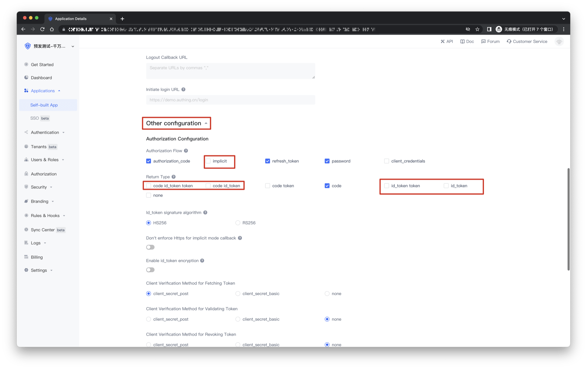 - Front-end mode: In this mode, the exchange of user information will be completed on the front-end of the browser, and the response_mode=form_post and response_type=id_token modes will be used. Please make sure that your OIDC application has enabled the implicit mode and the return type is checked. id_token