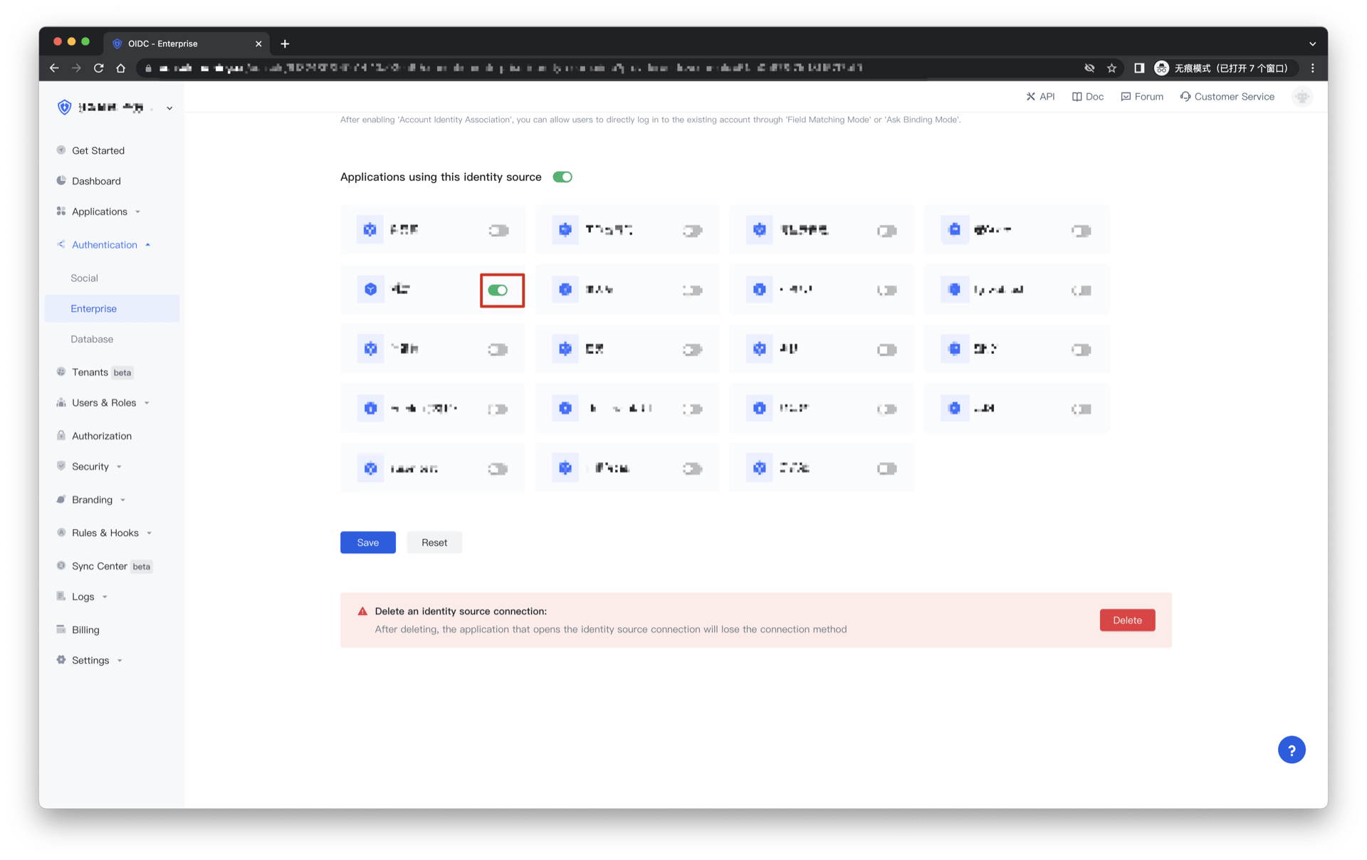 3.2 On the created OIDC Client identity source connection details page, open and associate an application created in the Authing console