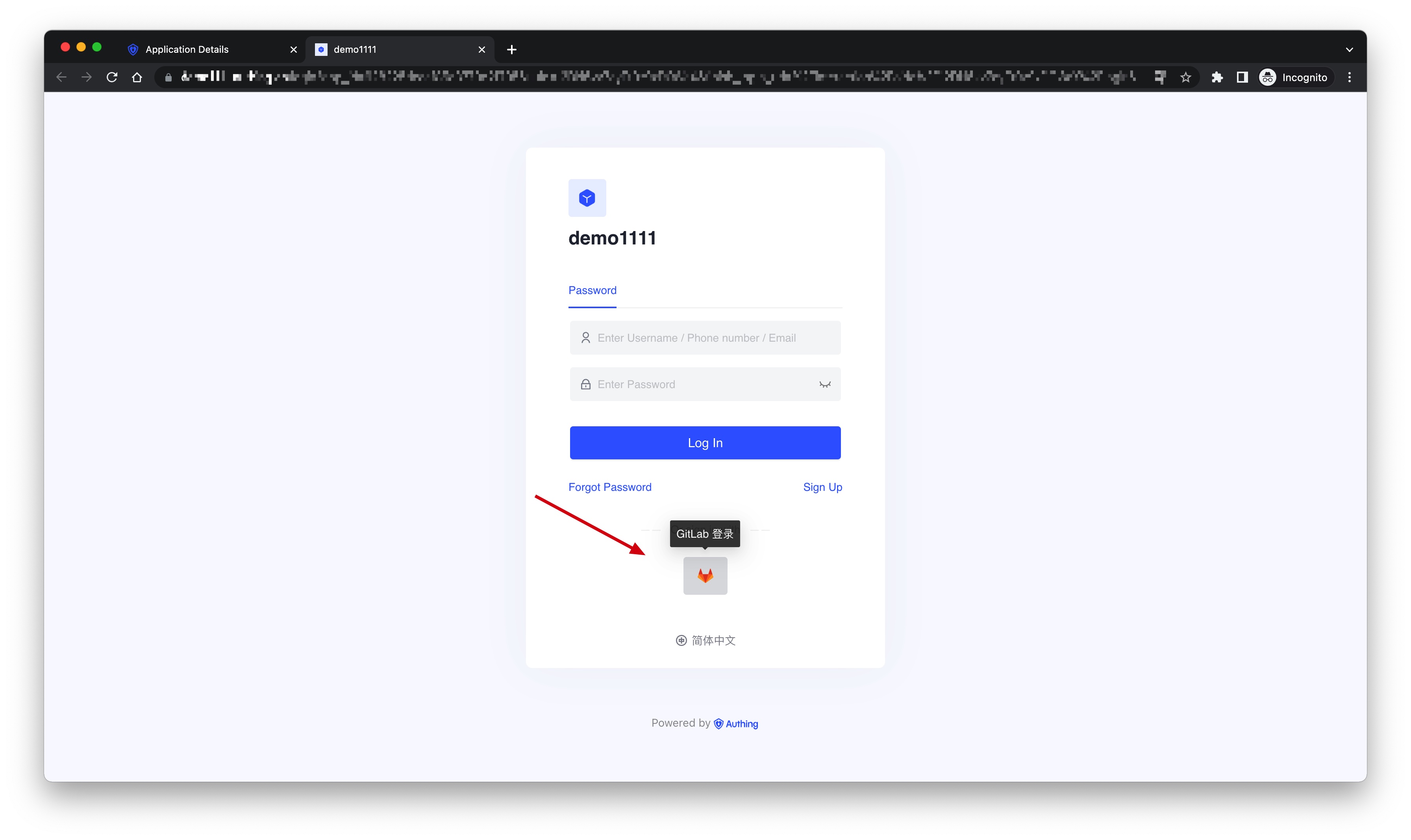 3.3 Click the "Experience Login" button of the app in the Authing Console, and experience the "GitLab" login in the pop-up login window