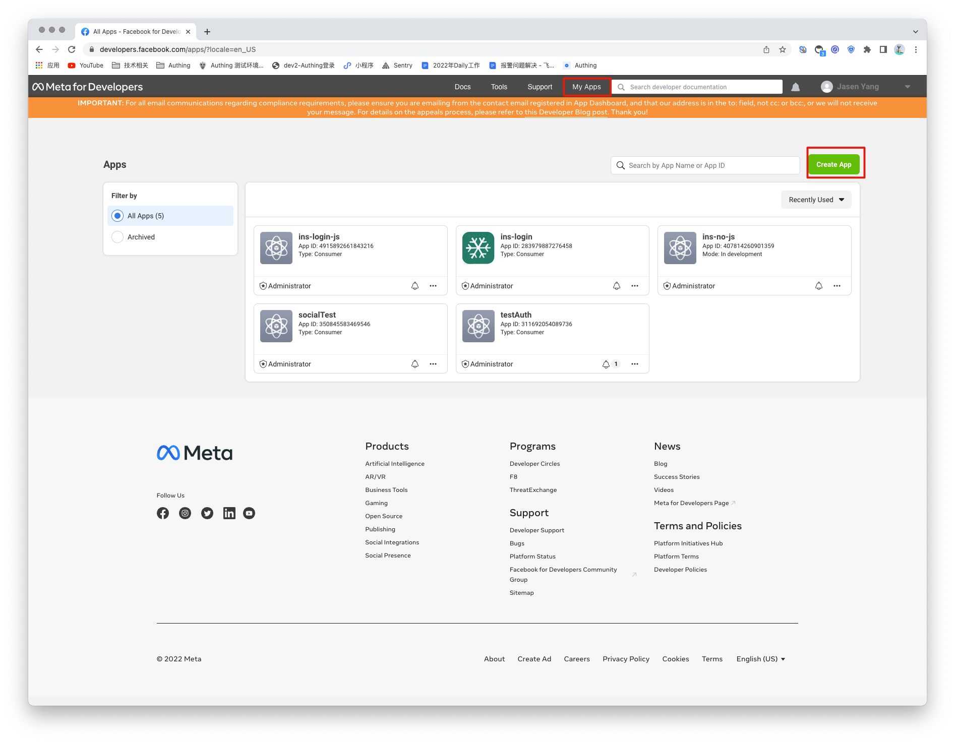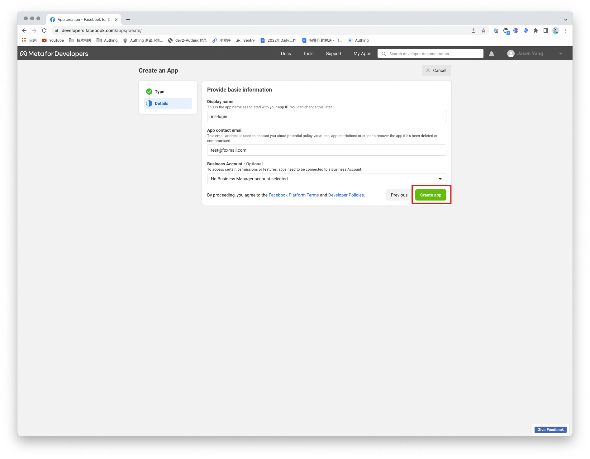 Go to developers.facebook.com (opens new window), click My Apps, then create a new app and select Consumer or No App Type , fill in the application name.
