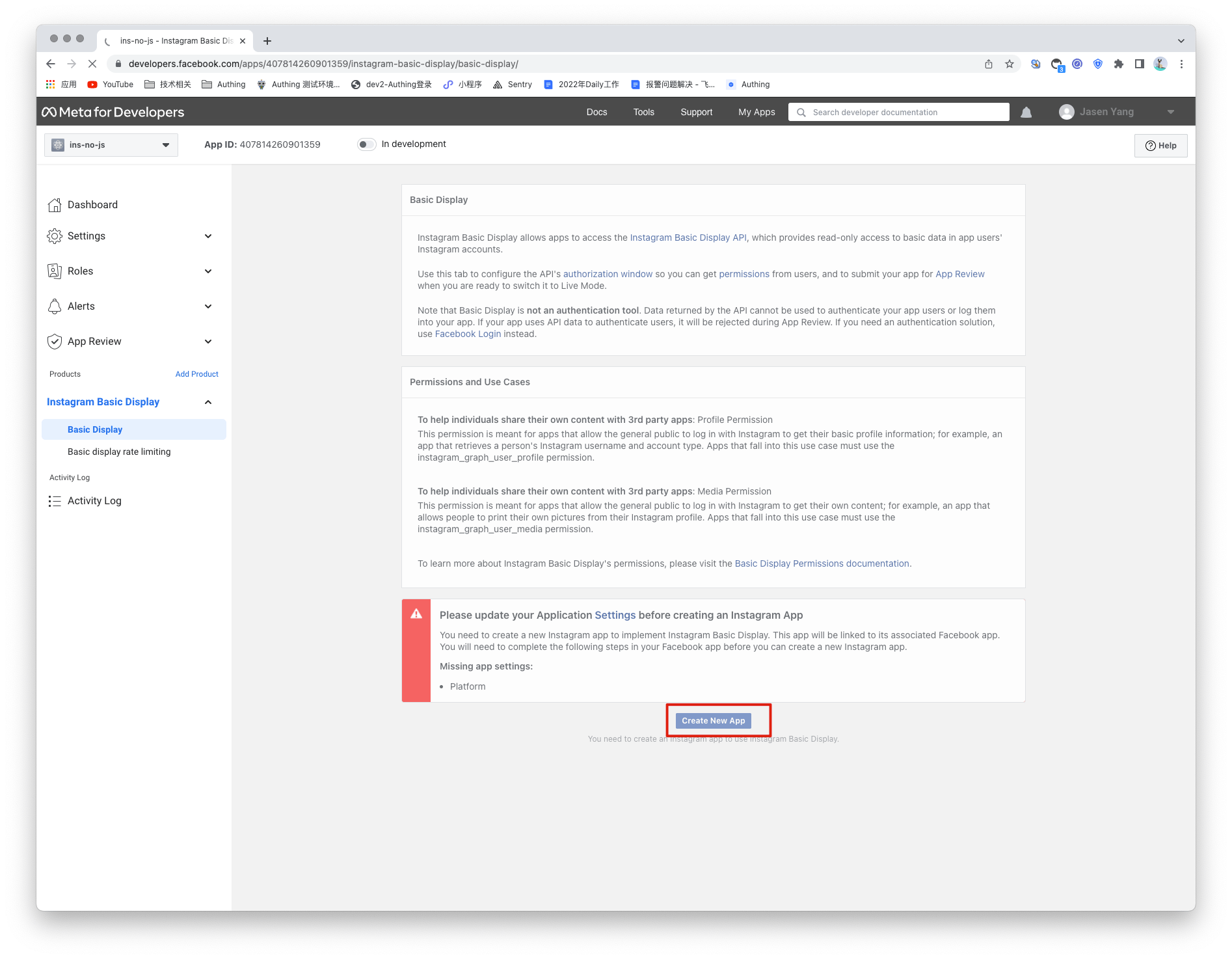 In the last step, Instagram needs permission to access instagram_graph_user_profile, so this permission needs to be increased. Then click and save the changes, the instagram application is created successfully.