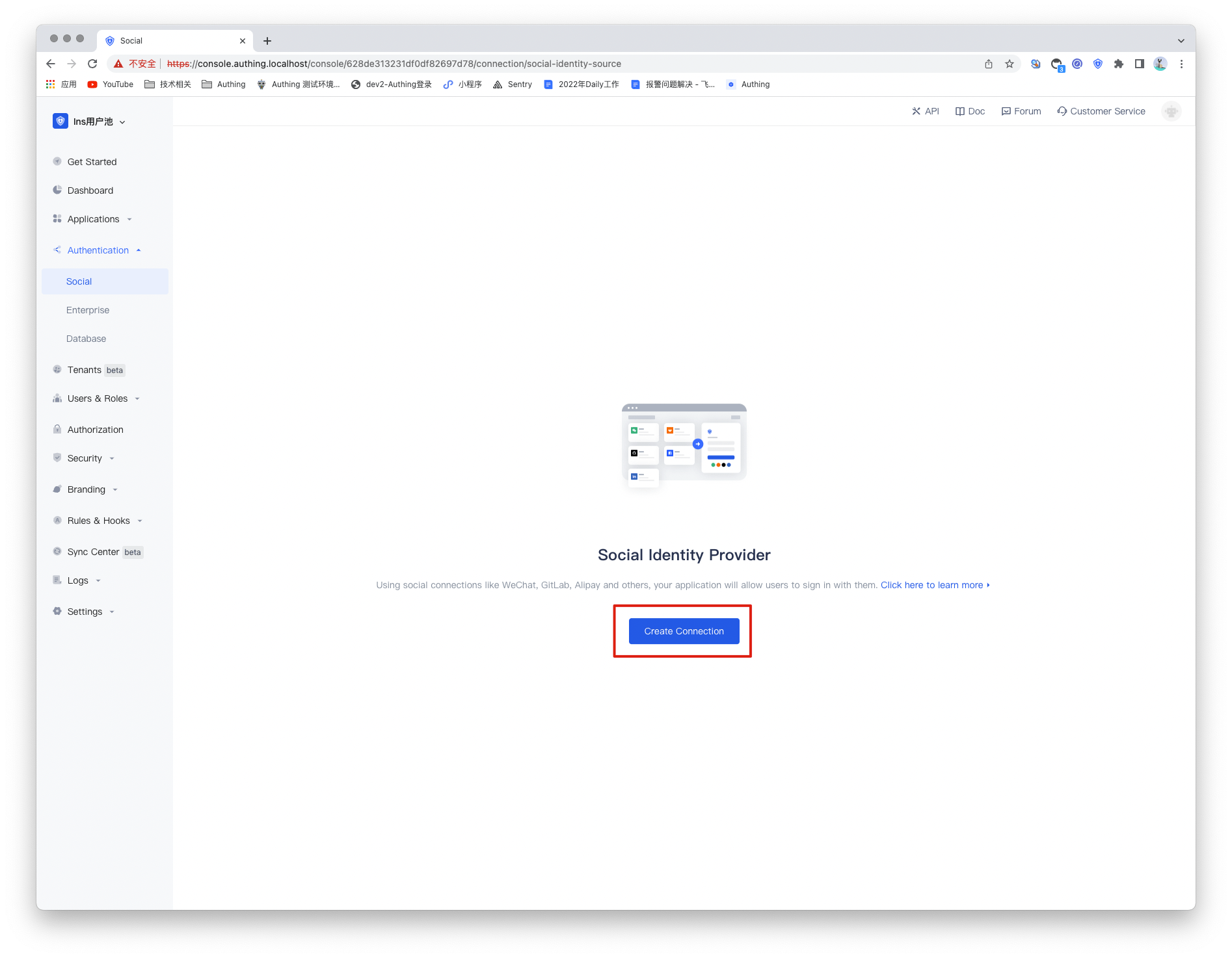 2.1 On the 「Social Identity Source」 page of the Authing Console, click the 「Create Social Identity Source」button to enter the 「Select Social Identity Source」page.
