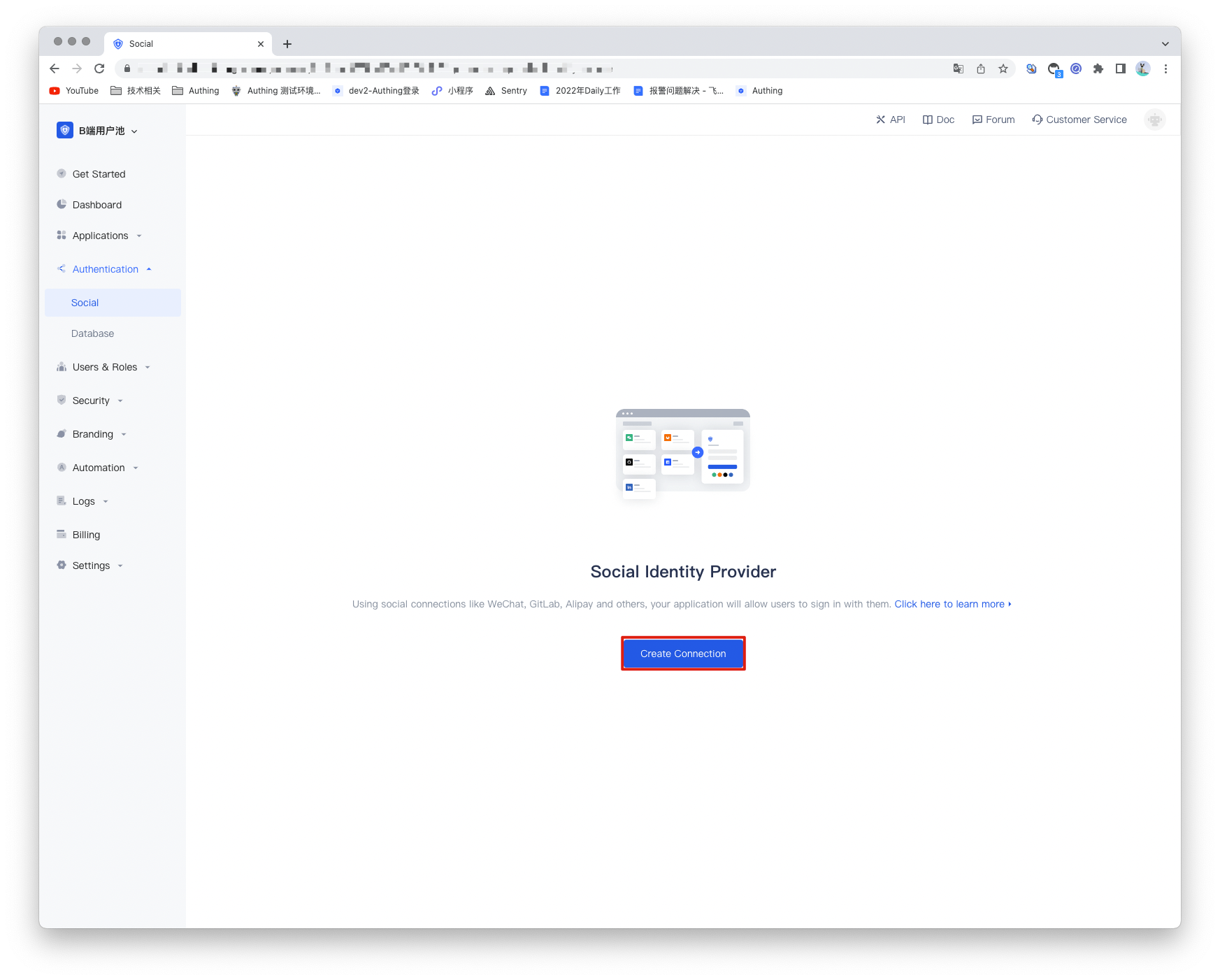 2.1 On the "Social Identity Source" page of the Authing Console, click the "Create Social Identity Source" button to enter the "Select Social Identity Source" page.