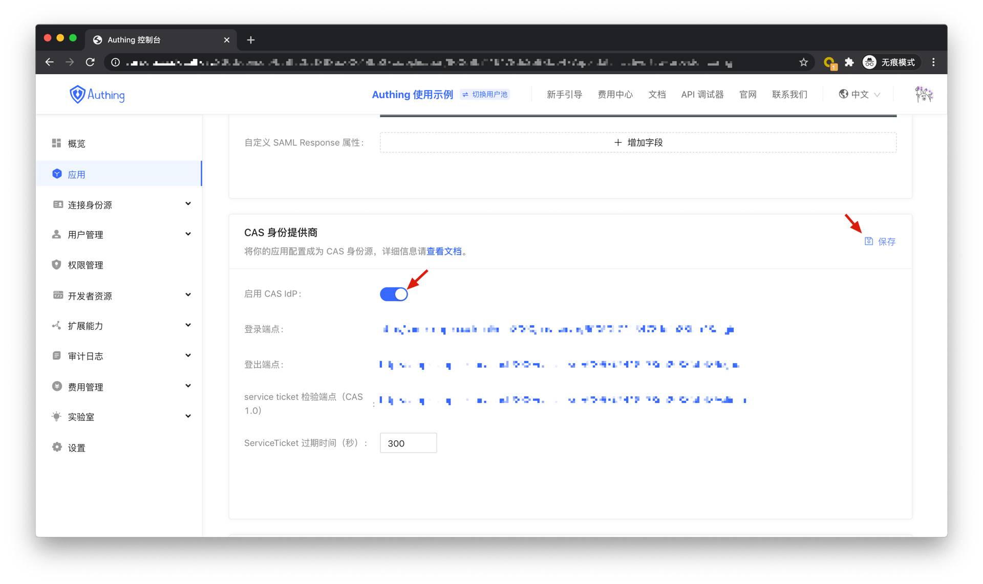 In the "CAS Identity Provider" tag, enable the CAS IdP and save the settings.。