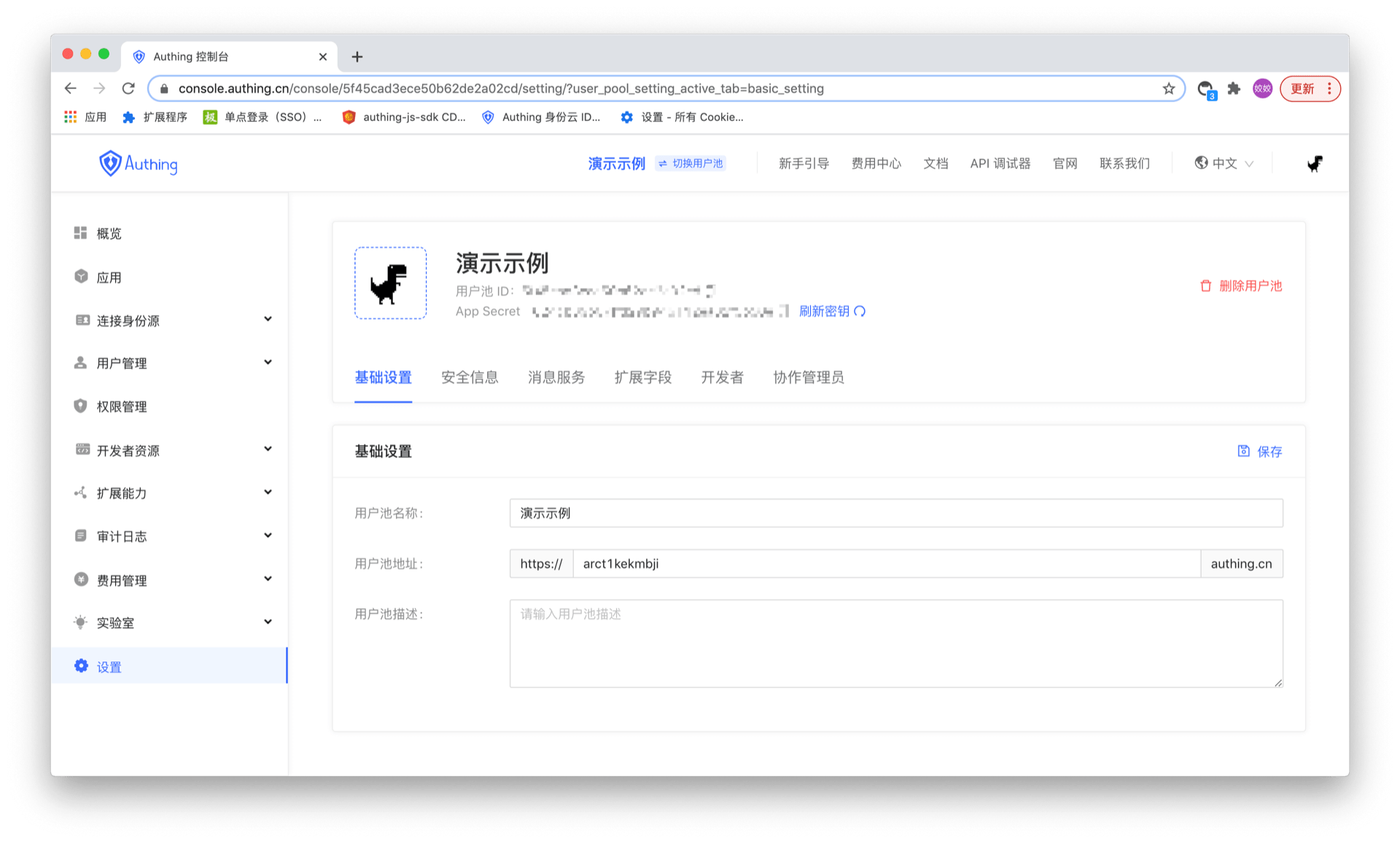 Basic user pool settings include: user pool name, user pool address, and user pool description. Users can modify the user pool information in Settings -> Basic Settings.