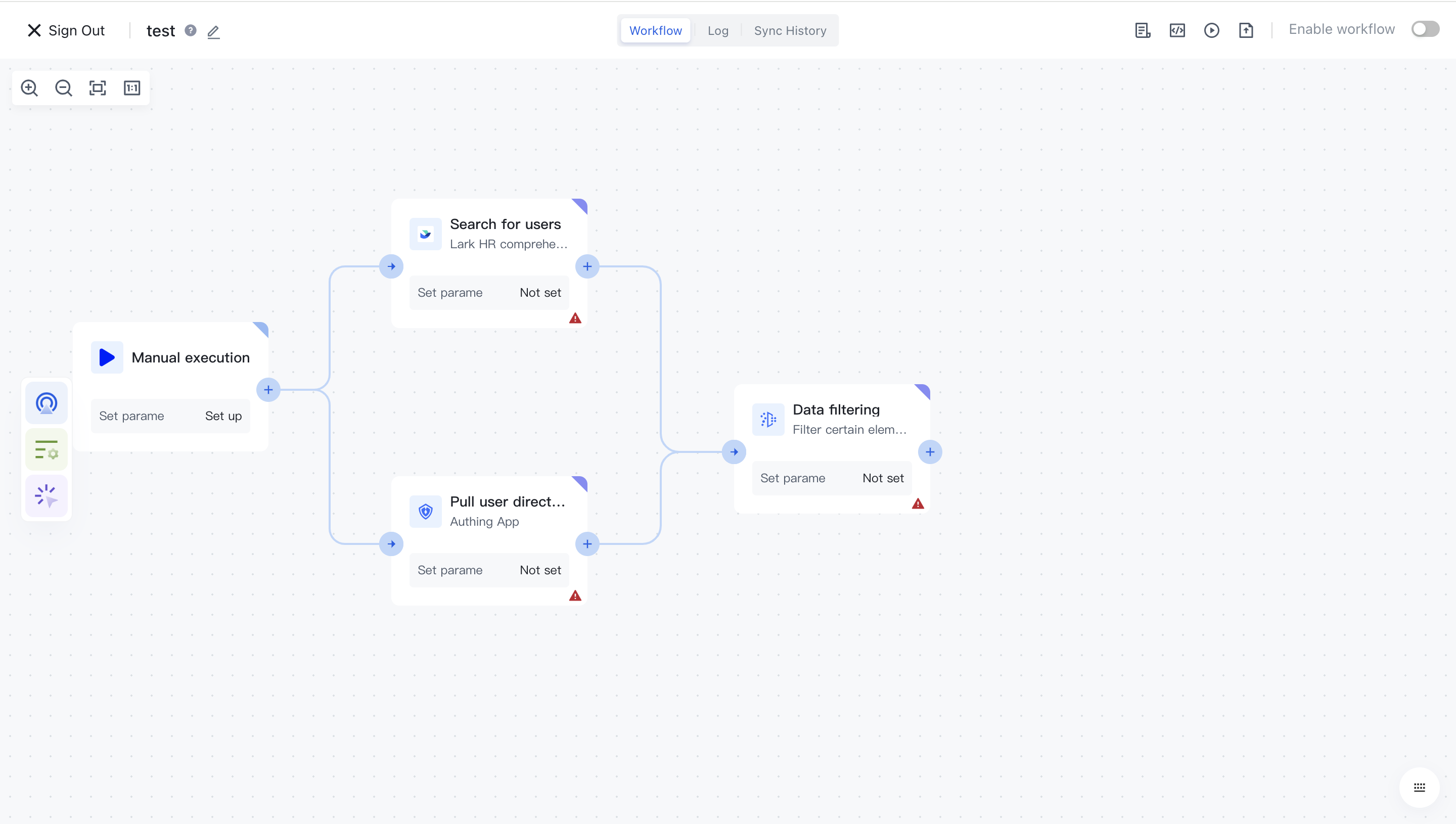In this way, we created two parallel branches that will be executed in parallel during the workflow runtime. Only when both branches are completed will they continue to be executed further; If another branch fails to run, the entire workflow will terminate in a failed state.