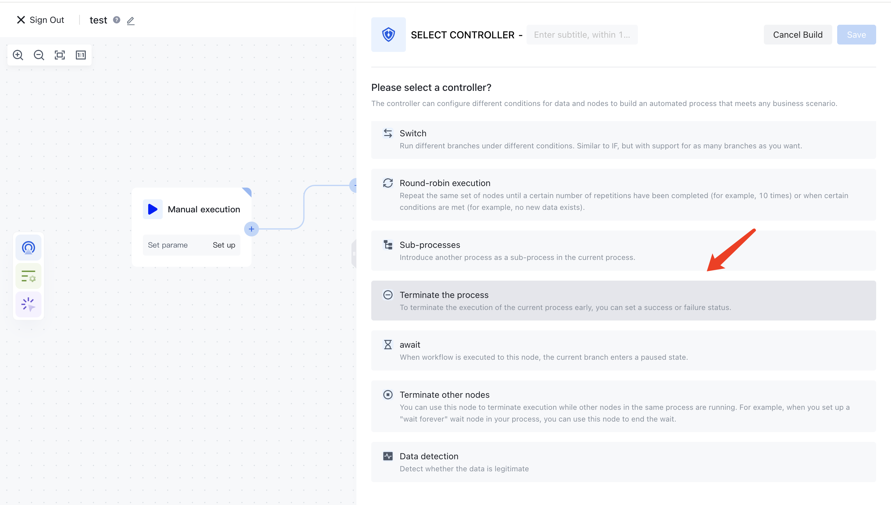 ¶ Add termination process node