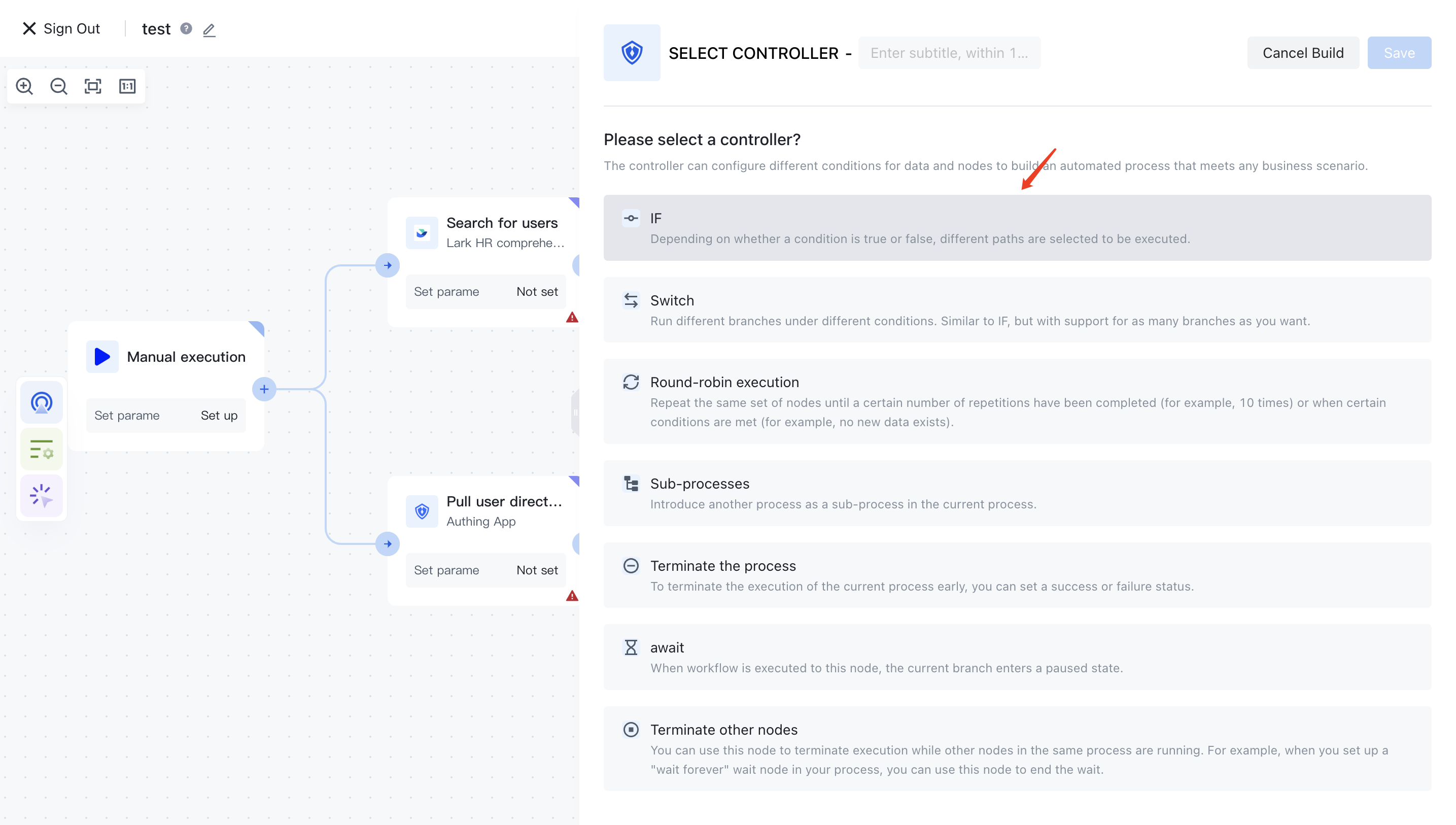 The following will introduce the creation methods of process control nodes such as loops, IF, SWITCH, function calls, waits, and concurrent requests. For detailed instructions on the use of each process control node, please refer to the "Process Control Node" section.