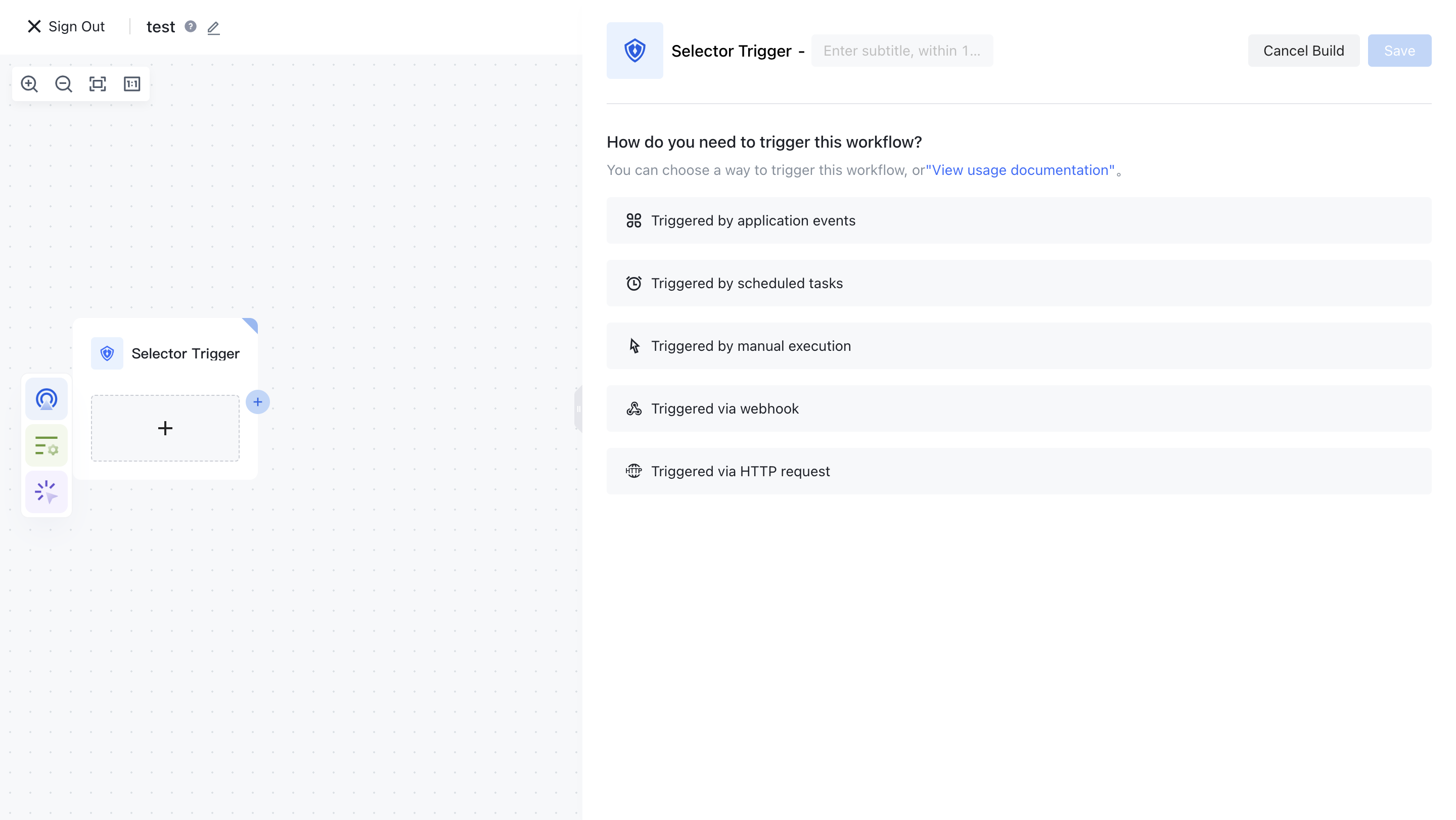 When you create a new workflow, a blank trigger will appear on the canvas, and you need to decide the specific starting method of your workflow: