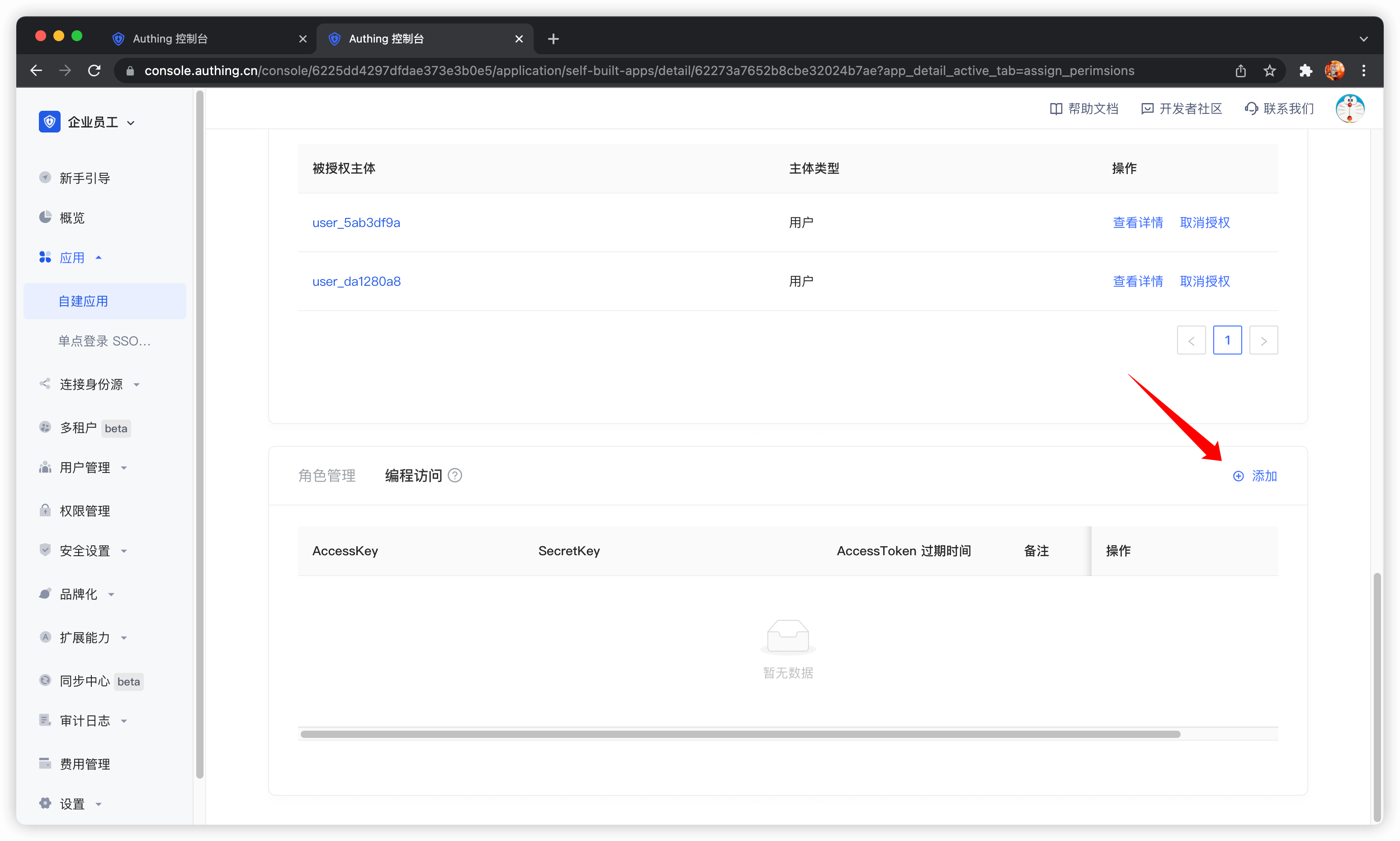 接下来我们为乙外包商添加授权,首先选择乙外包商的编程访问账号。