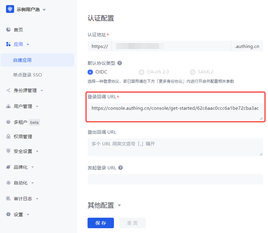 Authing 以 URL hash 的形式直接返回 id_token 和 access_token 到回调地址(自建应用 应用配置 标签页 认证配置 模块),例如: