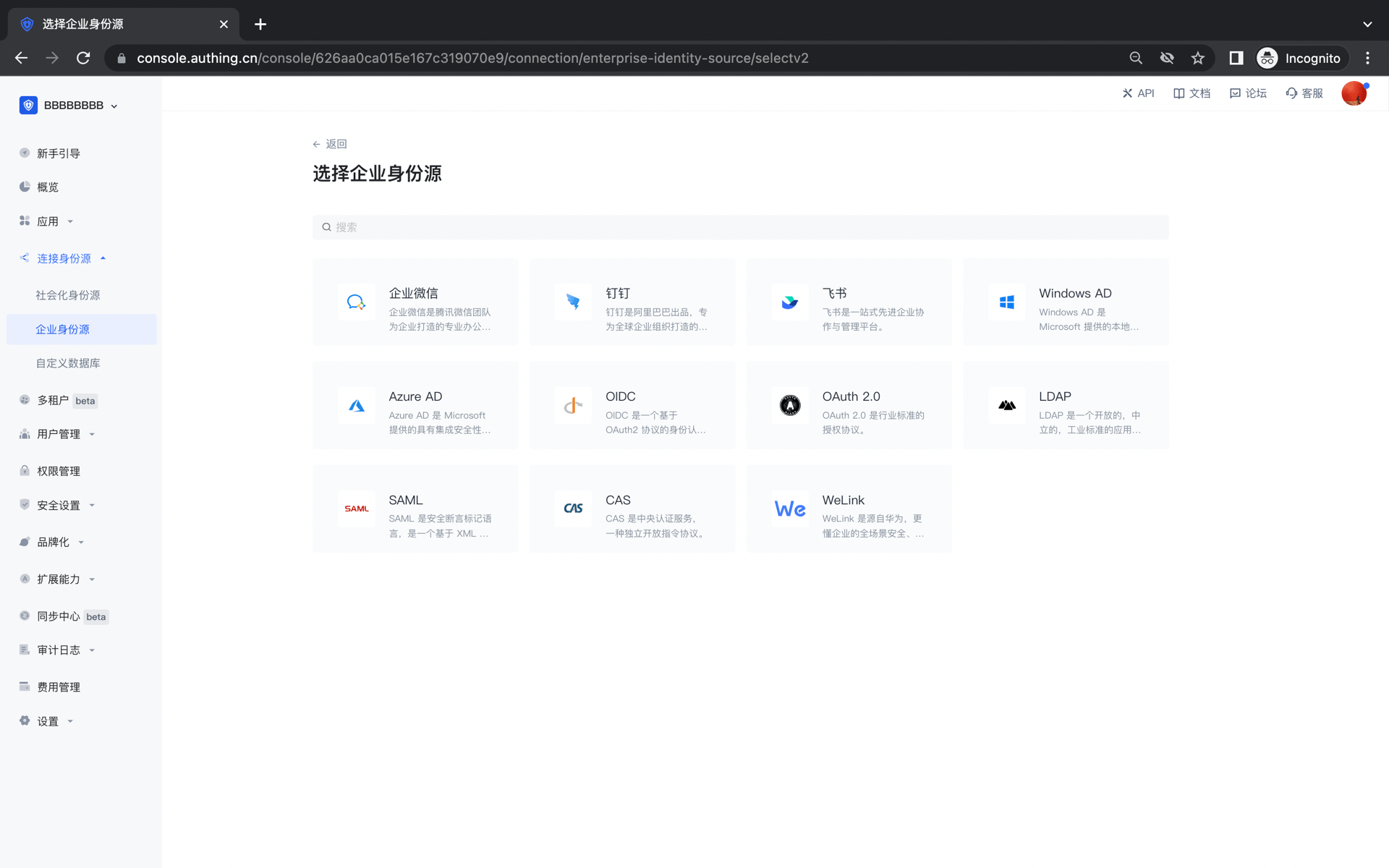 有关支持「企业身份源」功能权益的 Authing 用户池版本信息,请查看 官网「价格」页 (opens new window)。如你的版本不支持此权益,且想试用,可开通体验期。有关体验期介绍及开通方式,请查看 体验期。