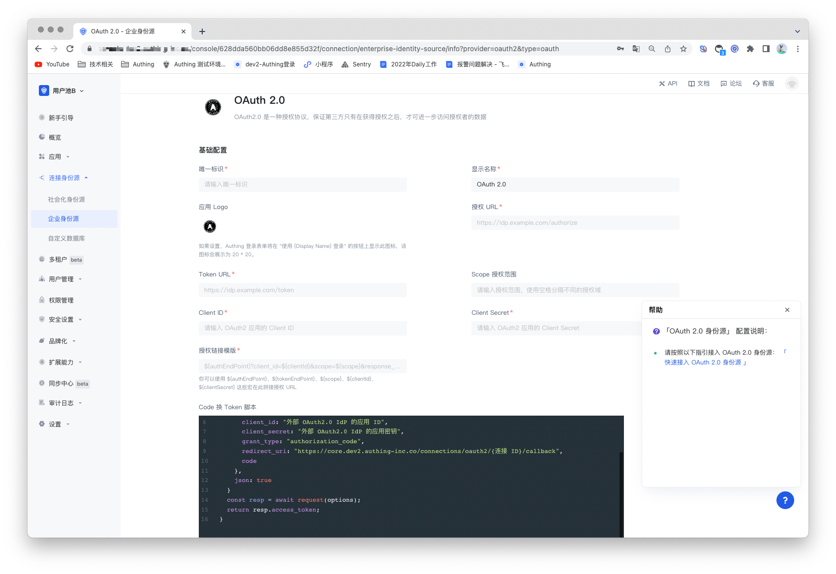 ¶ 第二步:在 Authing 控制台配置 OAuth2.0 身份源