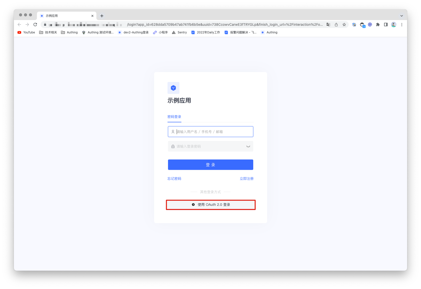 - 概述:OAuth2.0 是一个授权标准协议。 用户登录第三方应用时,可以通过使用 OAuth2.0 协议将数据安全的授权给调用方,通过验证后就可以完成免密登录第三方应用。它允许用户访问多个应用程序,同时仅向中央 CAS 服务器应用程序提供一次凭据(例如用户 ID 和密码)。Authing 支持 OAuth2.0 协议的认证能力,用户仅需提供 OAuth2.0 认证服务。通过配置 OAuth2.0 身份源后就可以使用其完成单点登录和登出功能。