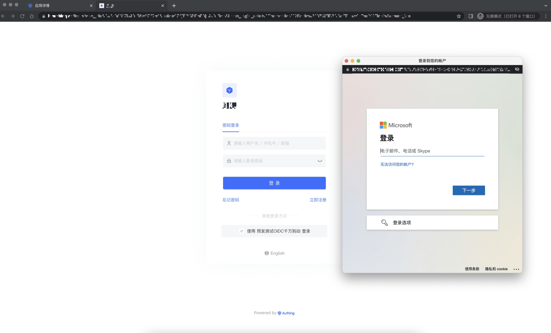 - 在登录页面体验 OIDC 第三方登录。