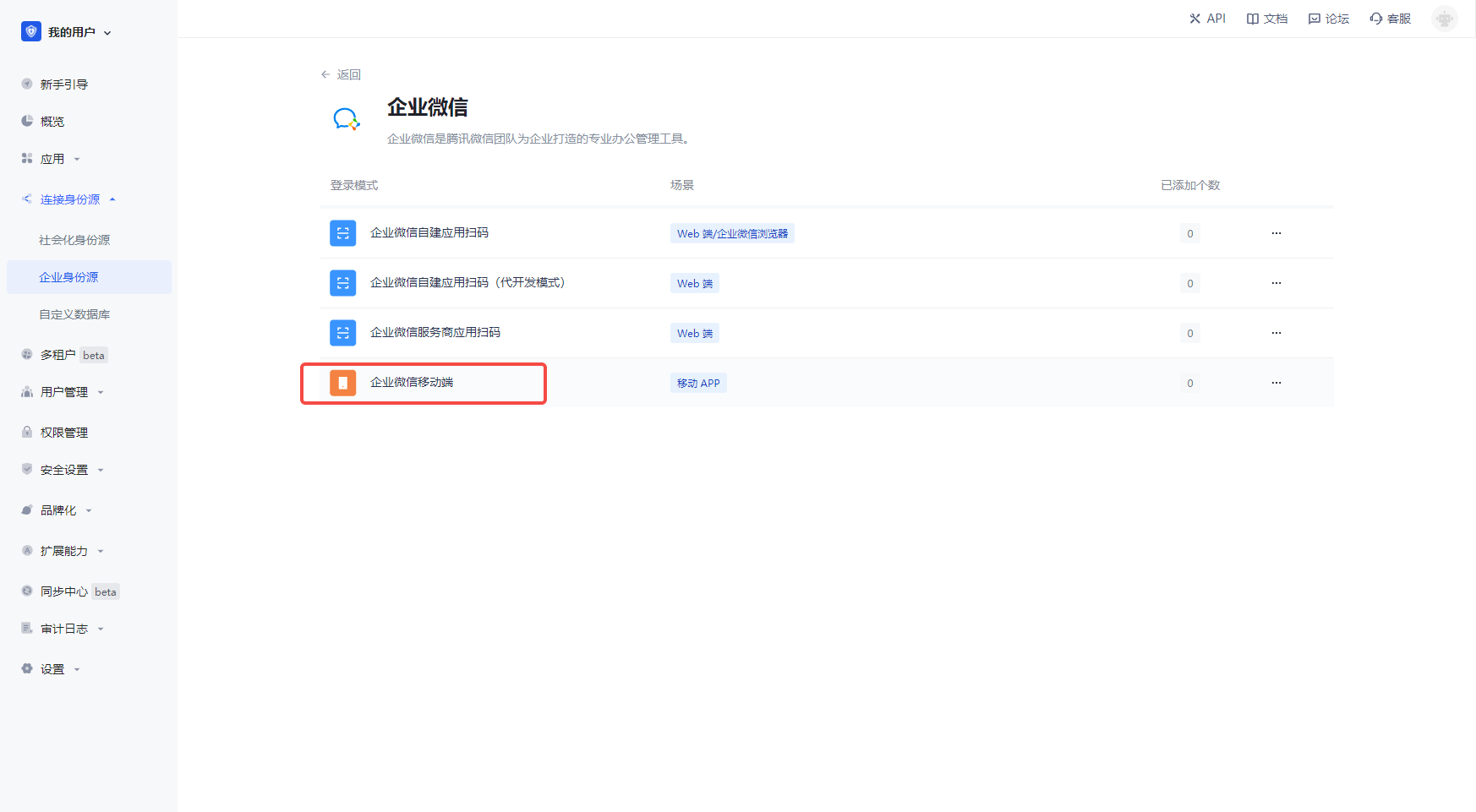 ¶ 第二步:在 Authing 控制台配置 企业微信移动端