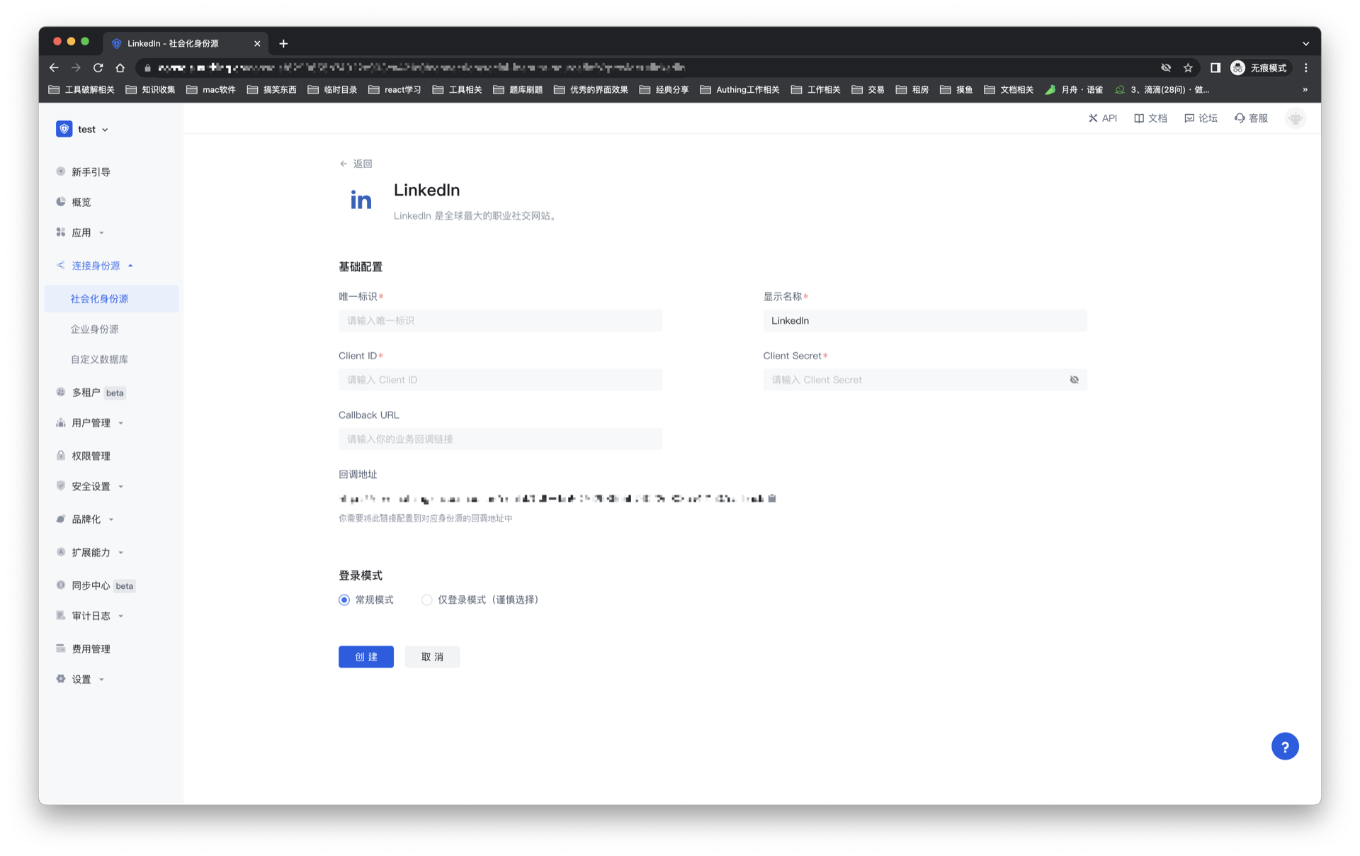 | 回调地址 | LinkedIn 有效跳转 URI。需要将此 URL 配置到 linkedIn developers 上。 |