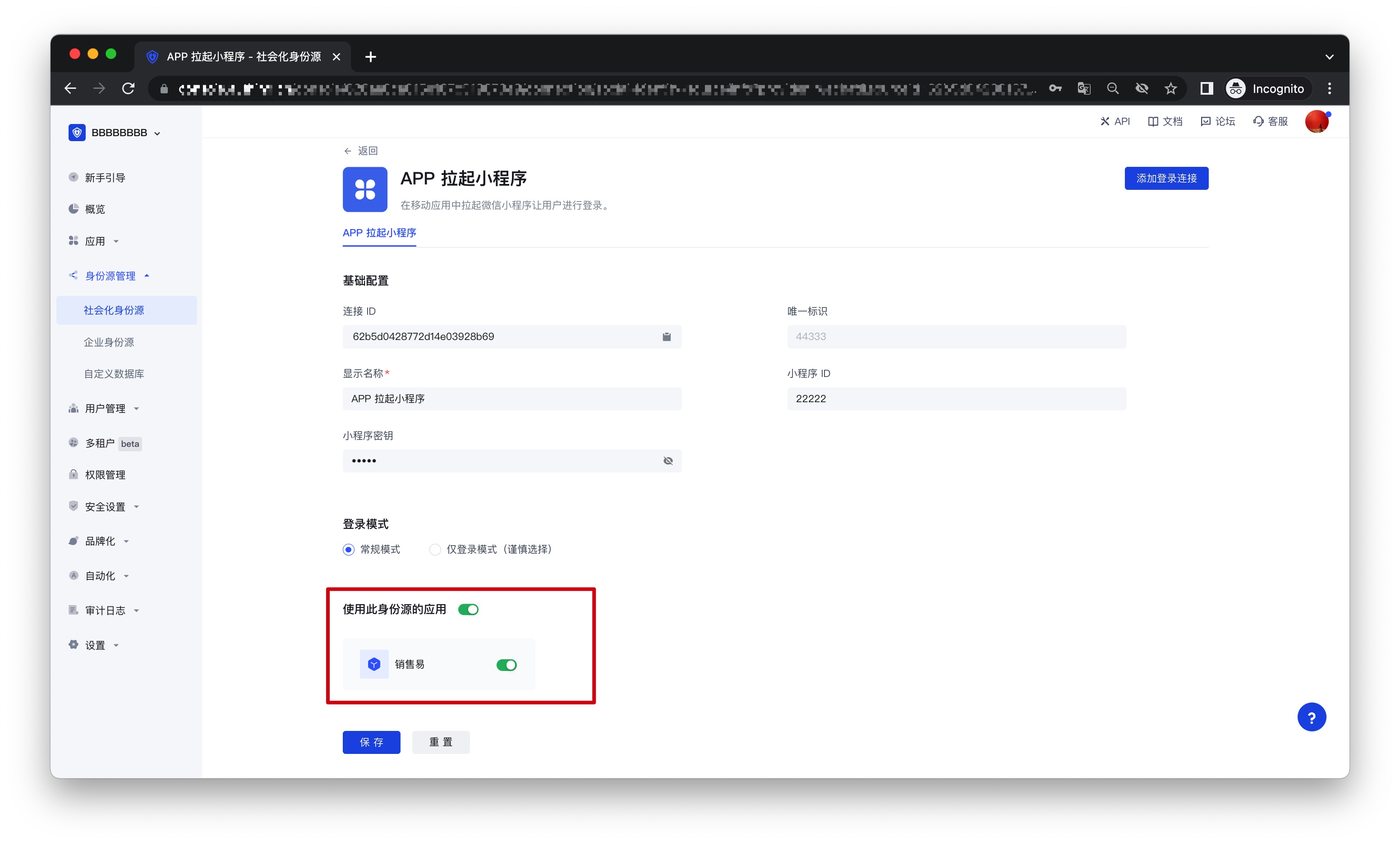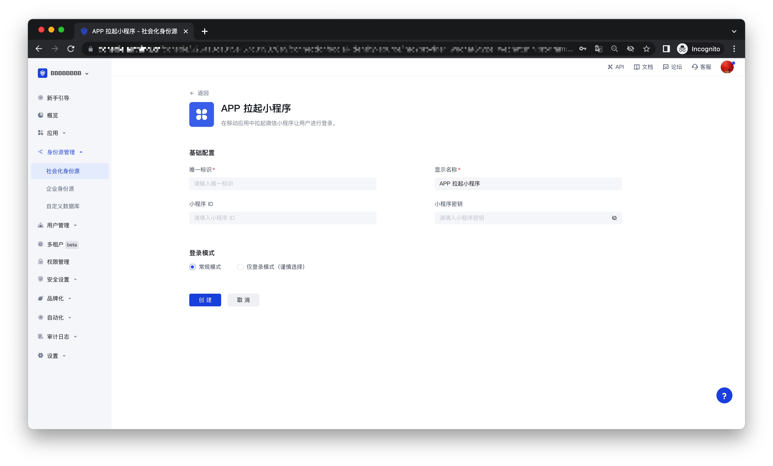 ¶ 第四步:在 Authing 控制台配置 APP 拉起小程序登录