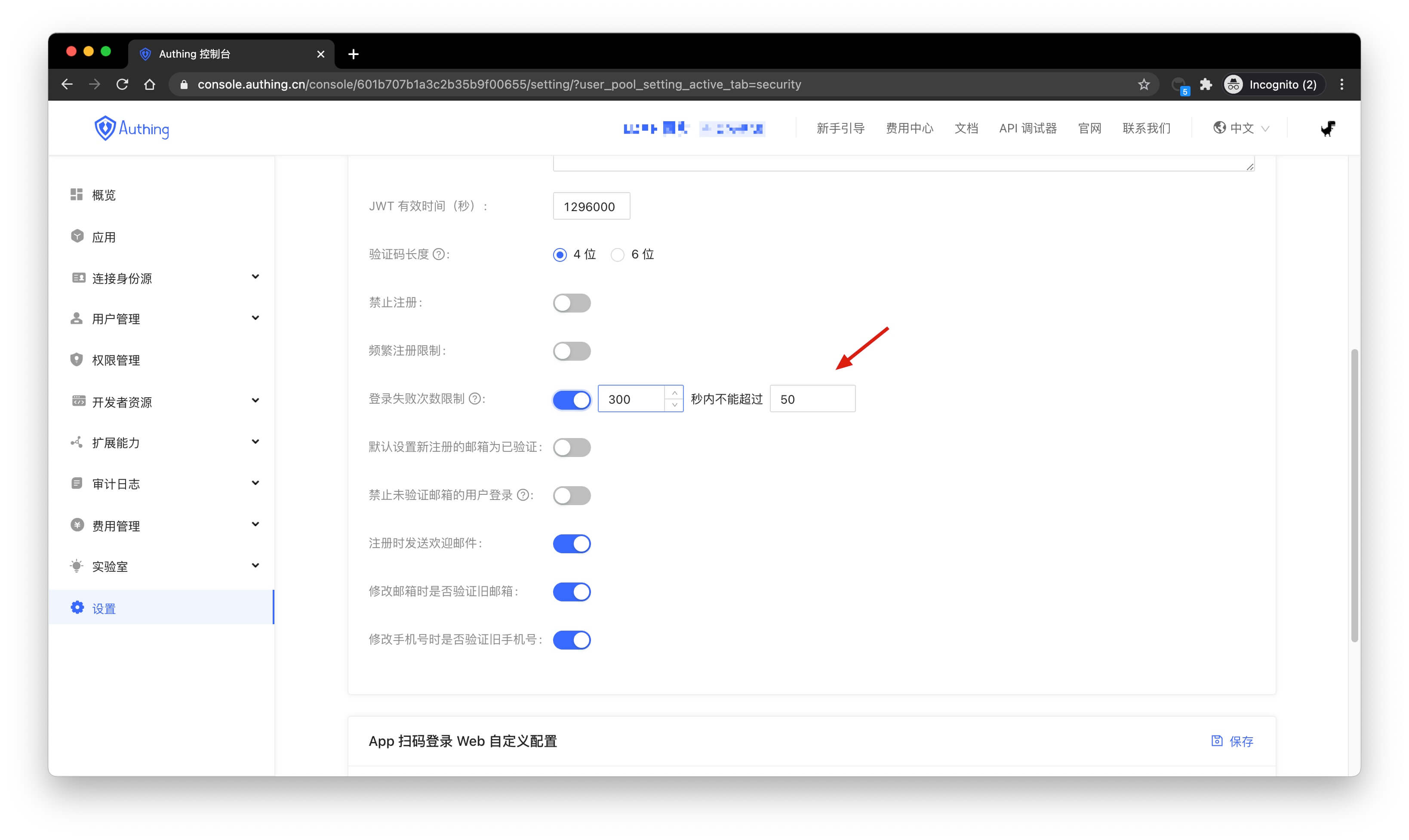 你可以在控制台开启 登录失败次数限制 开关,限制同一账号在多少秒内不能超过多少次失败登录: