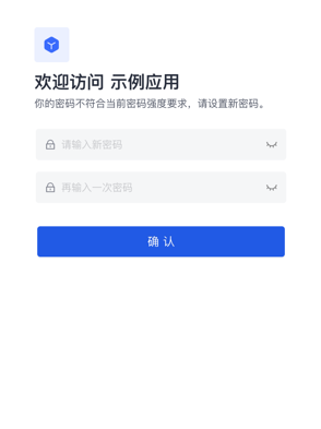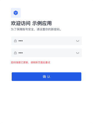 开启后,在设置了较高密码强度规则的情况下,登录较低强度密码的账号,跳转进入密码修改页。