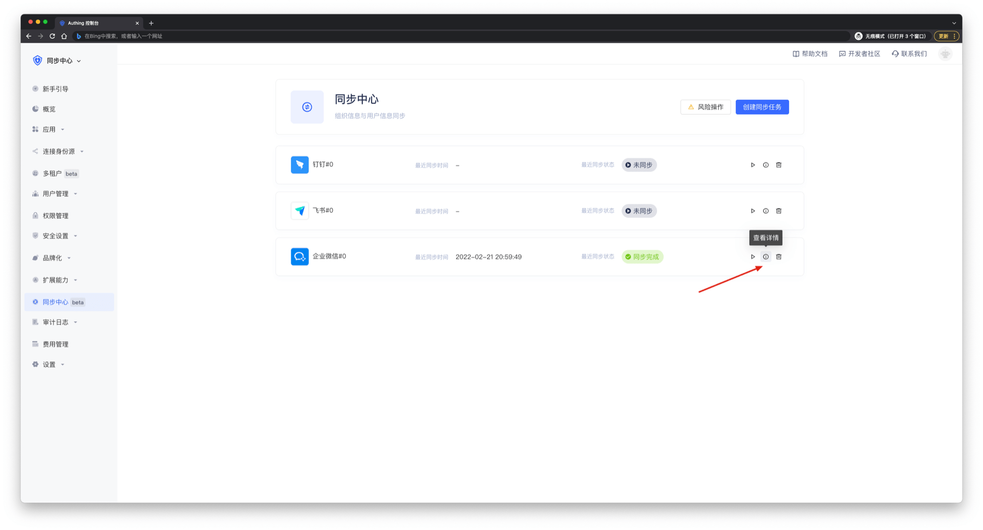 最后点击保存按钮,就可以在同步中心列表页看到新建的同步任务。