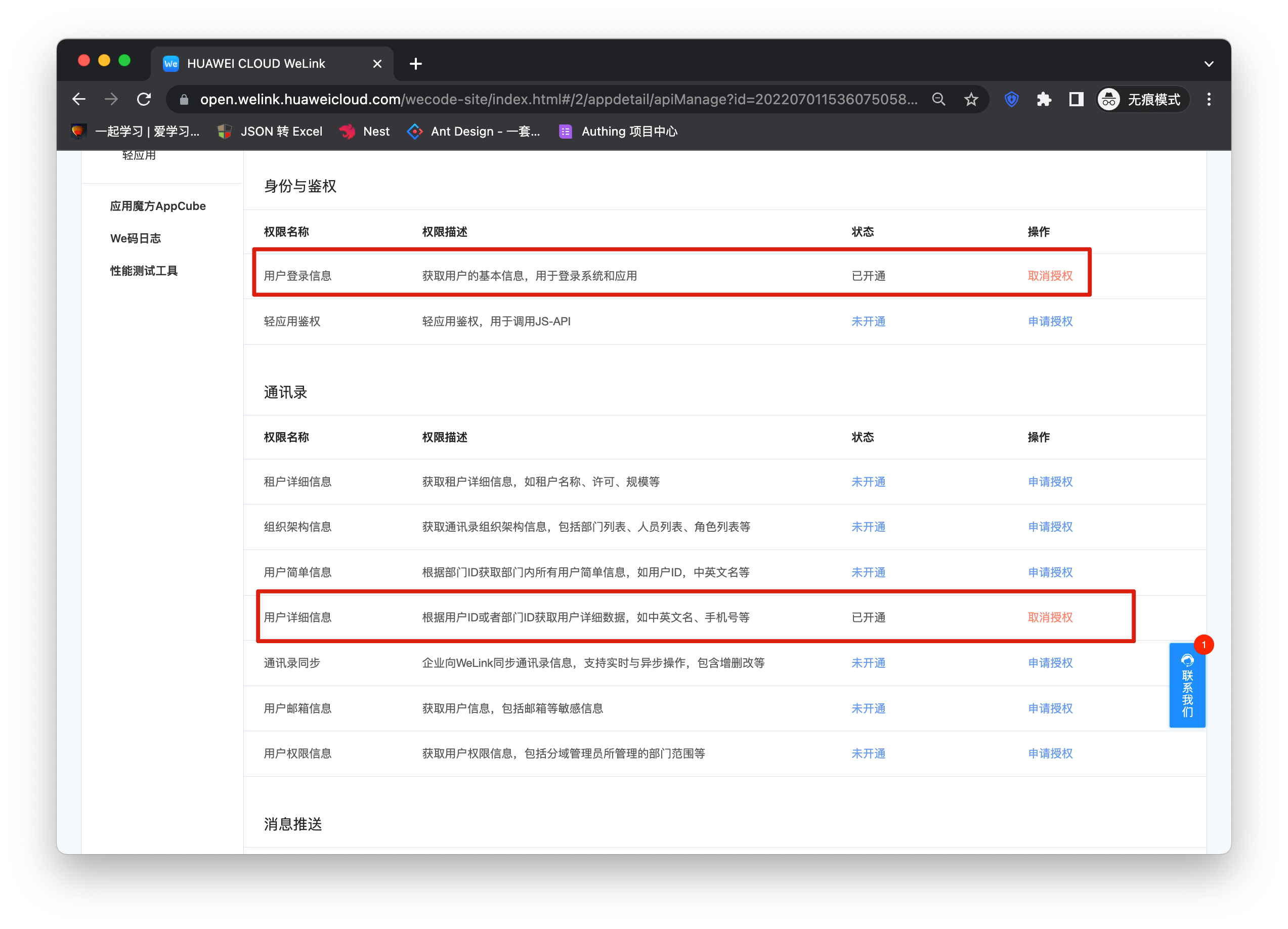 在权限详情页面开放用户登录信息以及用户详细信息权限。