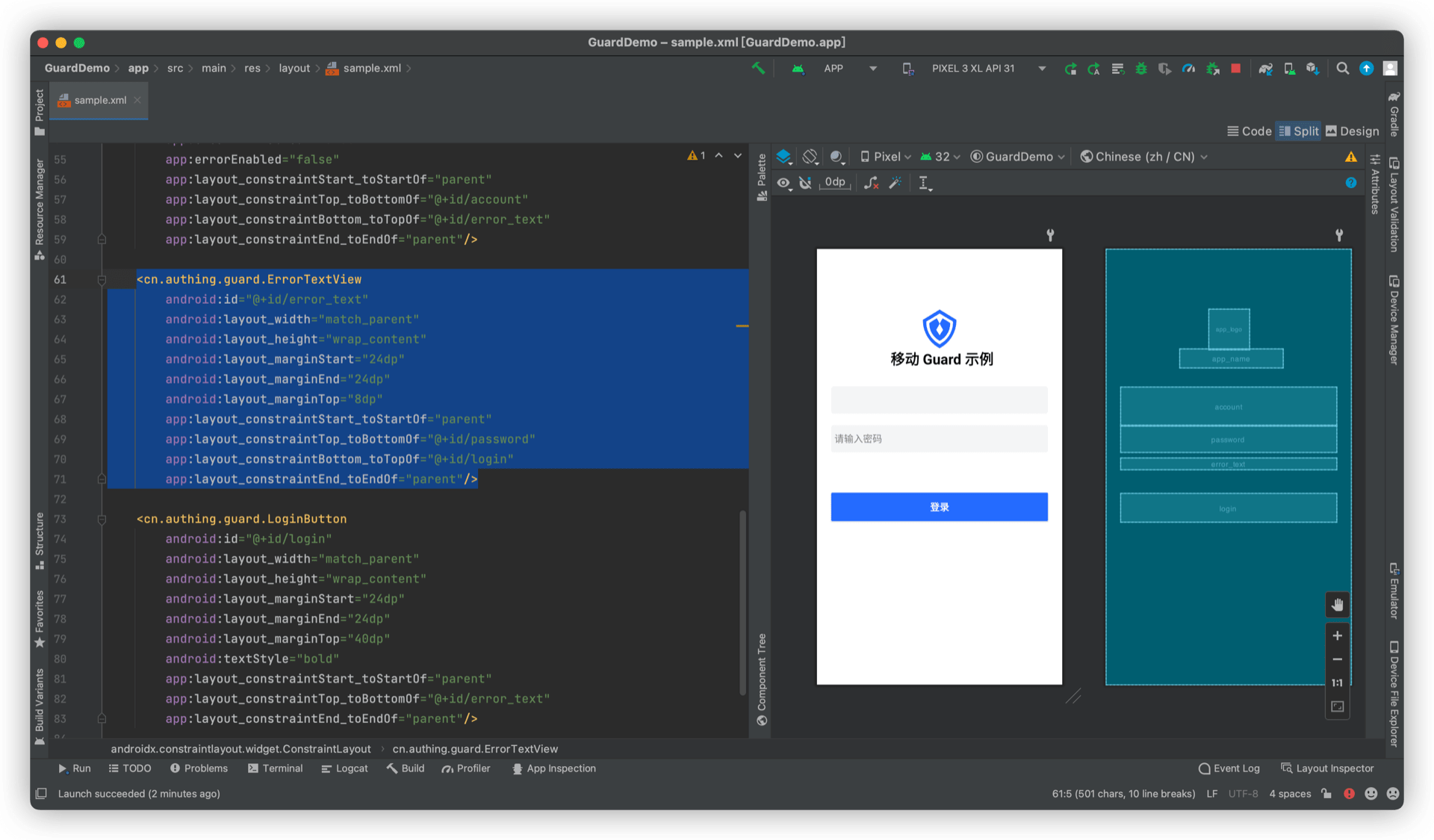 此组件可以使用红色字体显示认证过程中的错误信息。Guard 内部所有其他组件都会尝试将错误信息设置给 ErrorTextView。