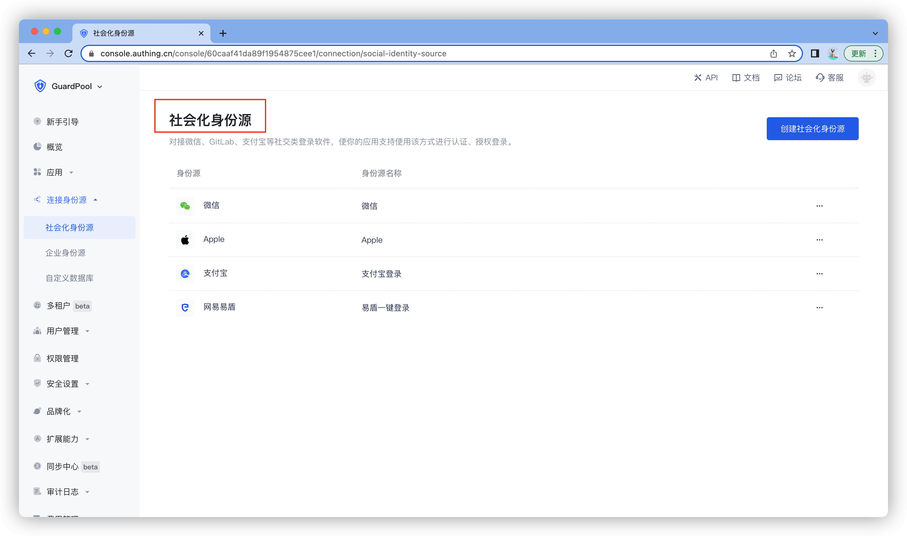 社会化登录源。auto:跟随控制台;wechat|alipay|lark|wecom,用 | 隔开