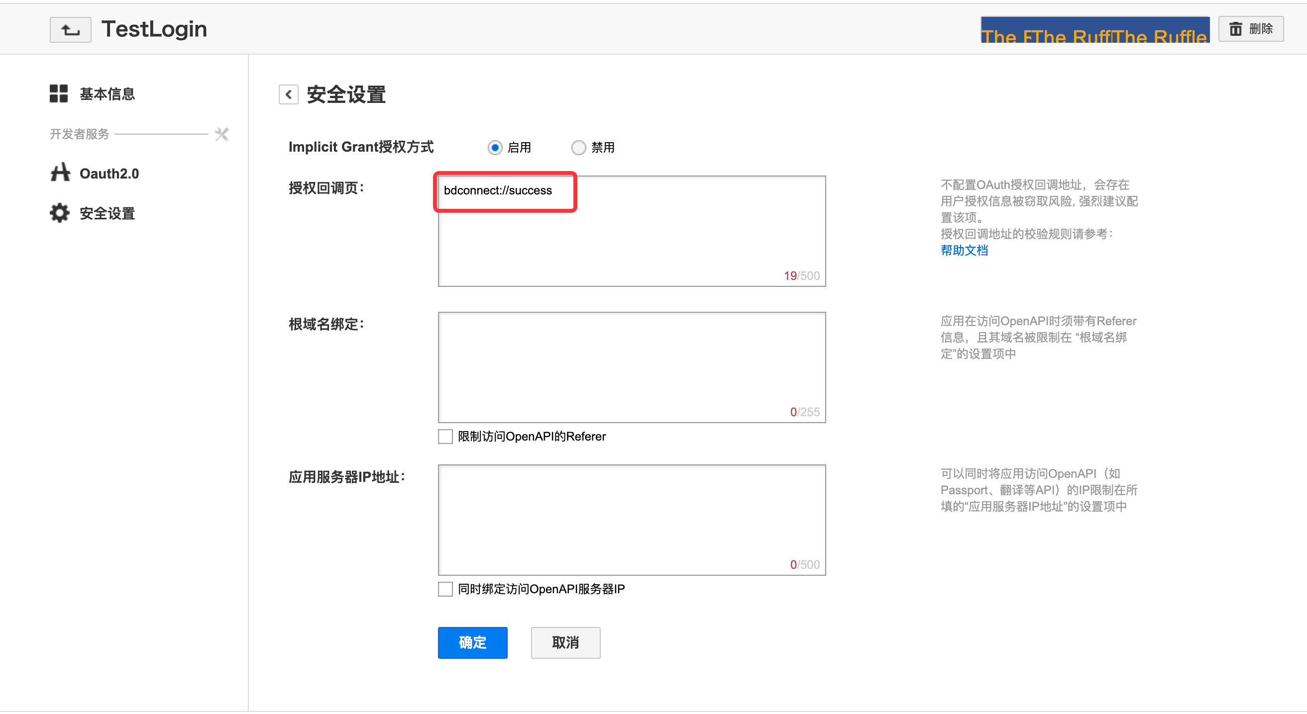 在百度应用后台增加授权回调页 bdconnect://success,如: