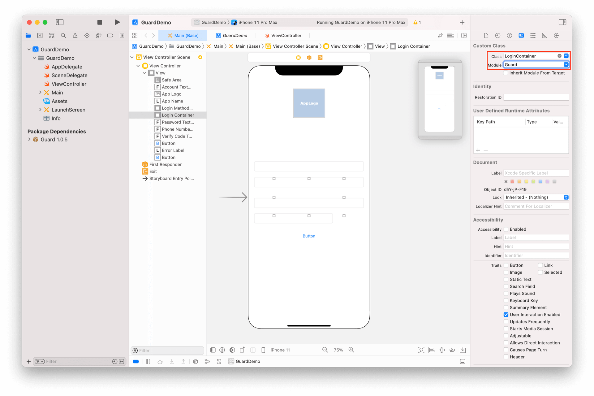 放置两个 UIView,将它们的类型改为 LoginContainer