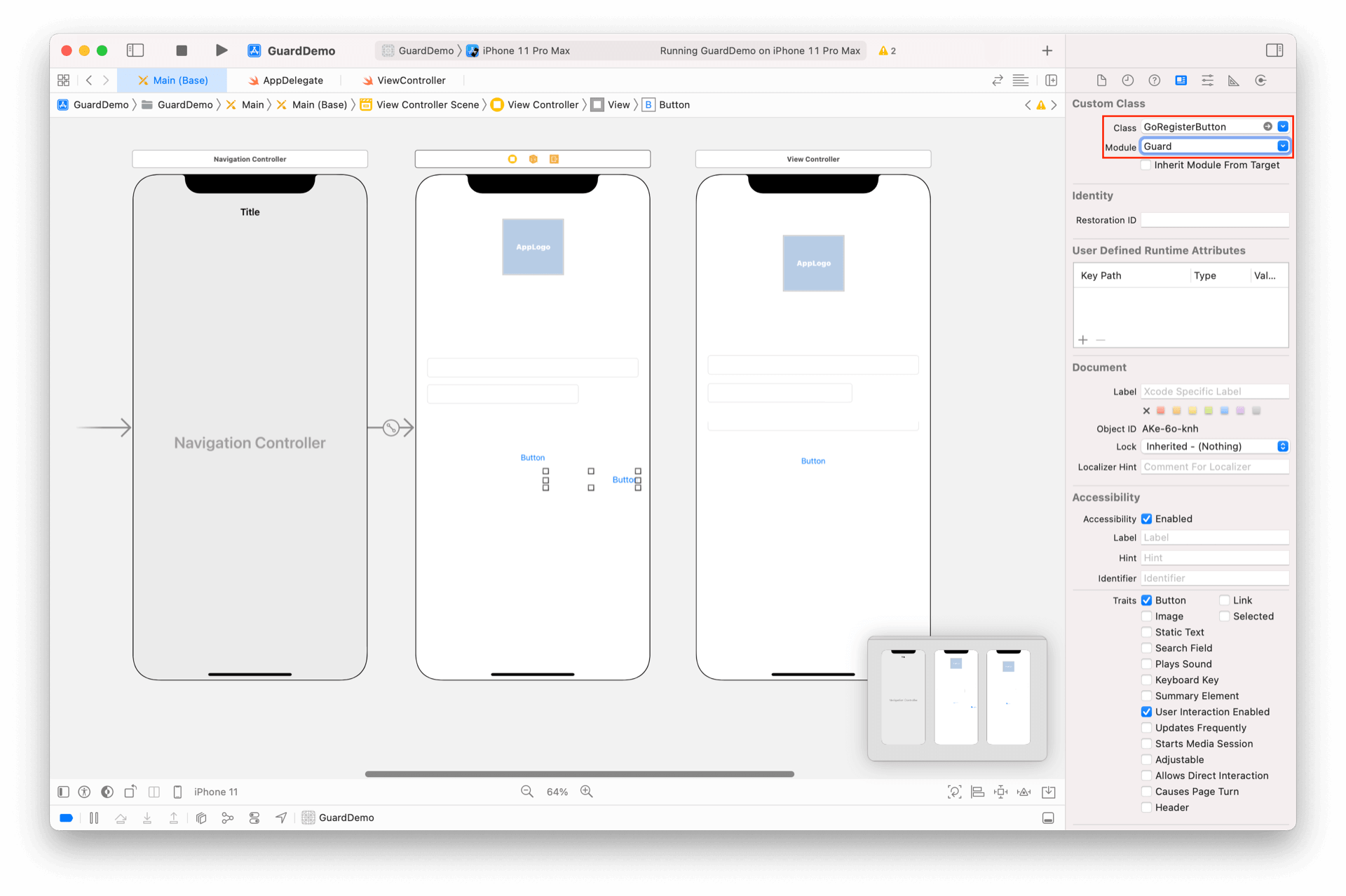 我们以登录示例为基础工程,首先在入口 ViewController 前面增加 NavigationViewController