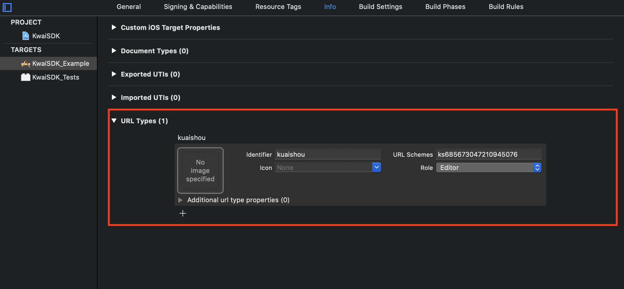 1. 选择 Xcode 工程,在 Targets -> Info -> URL Types 中点击加号。