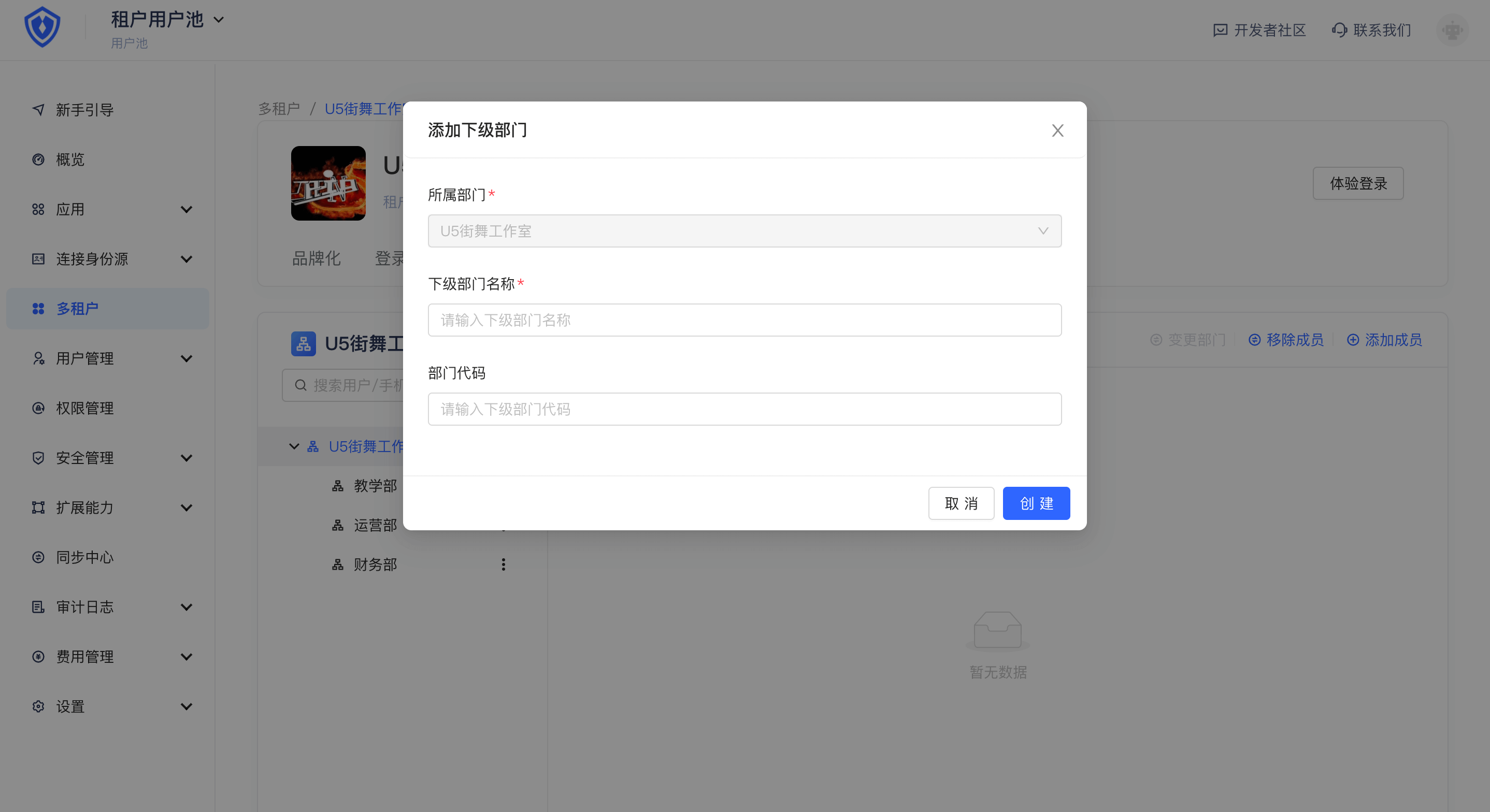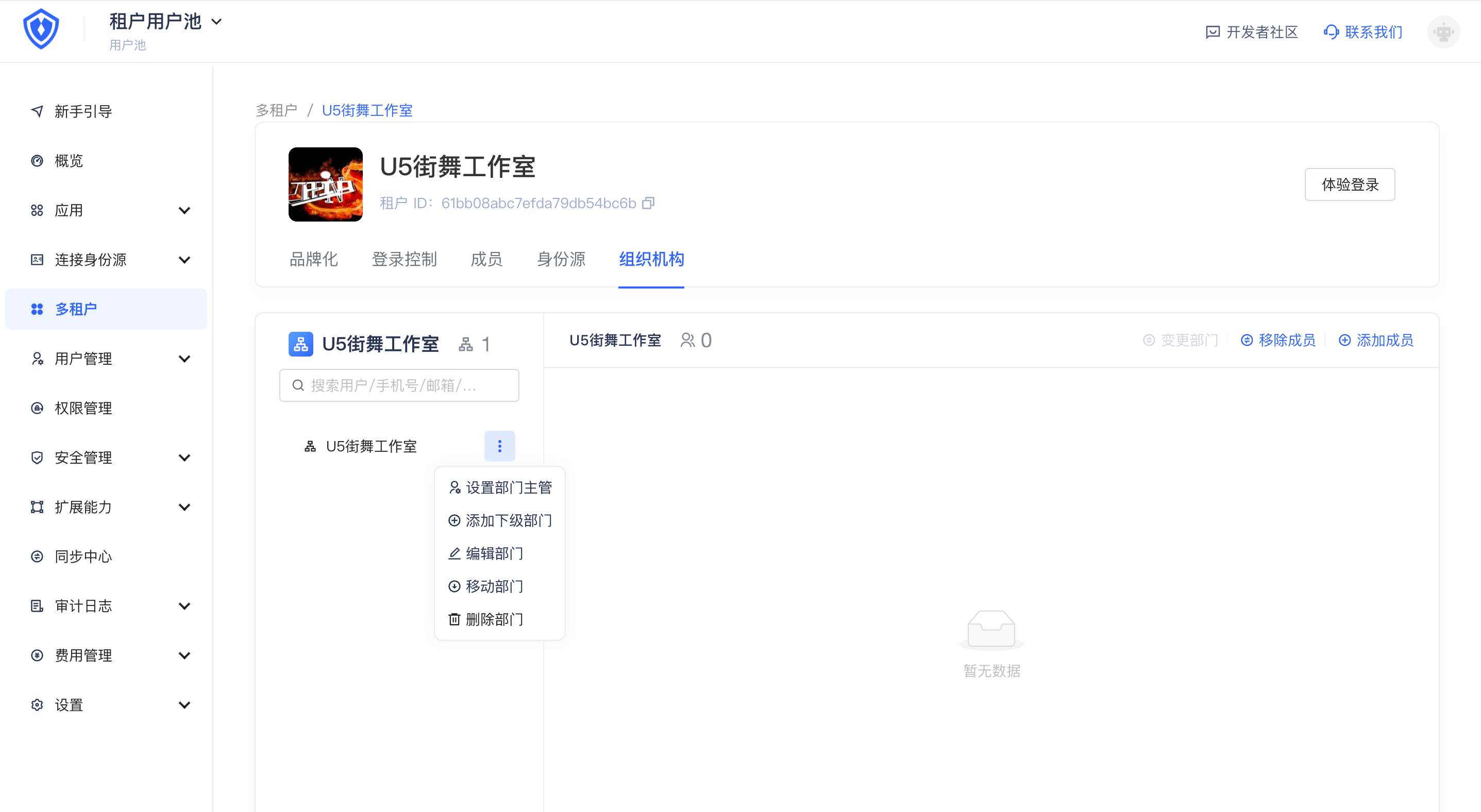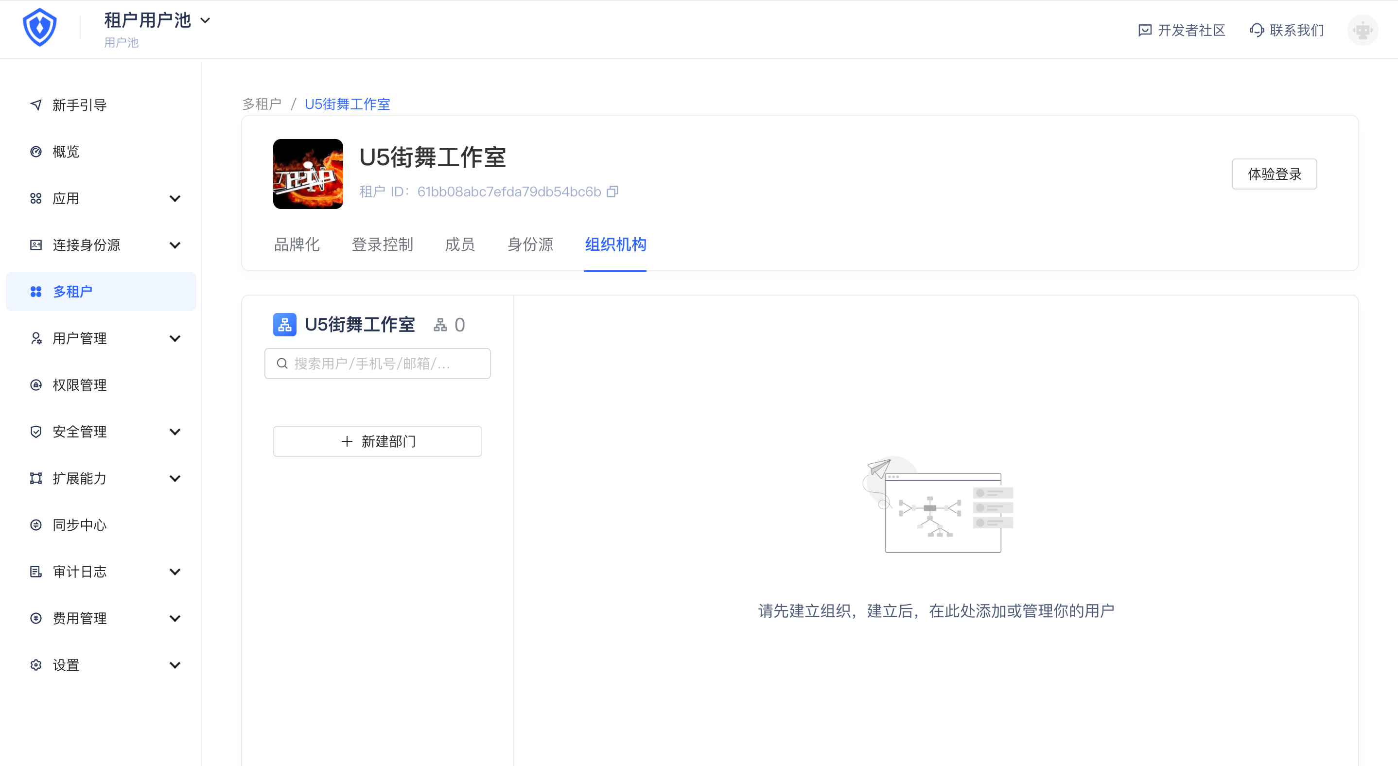 「多租户」版本用户池当前已支持「组织机构」功能,你可以为你的租户创建组织机构并通过组织机构管理租户下成员。也可以将组织机构通过 SDK 嵌入到你的 SaaS 软件,在此「开发文档」了解详情。
