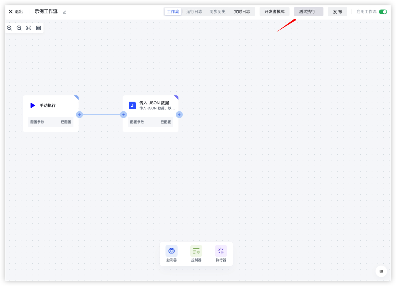 配置完成之后直接点击右上角的「测试执行」按钮即可: