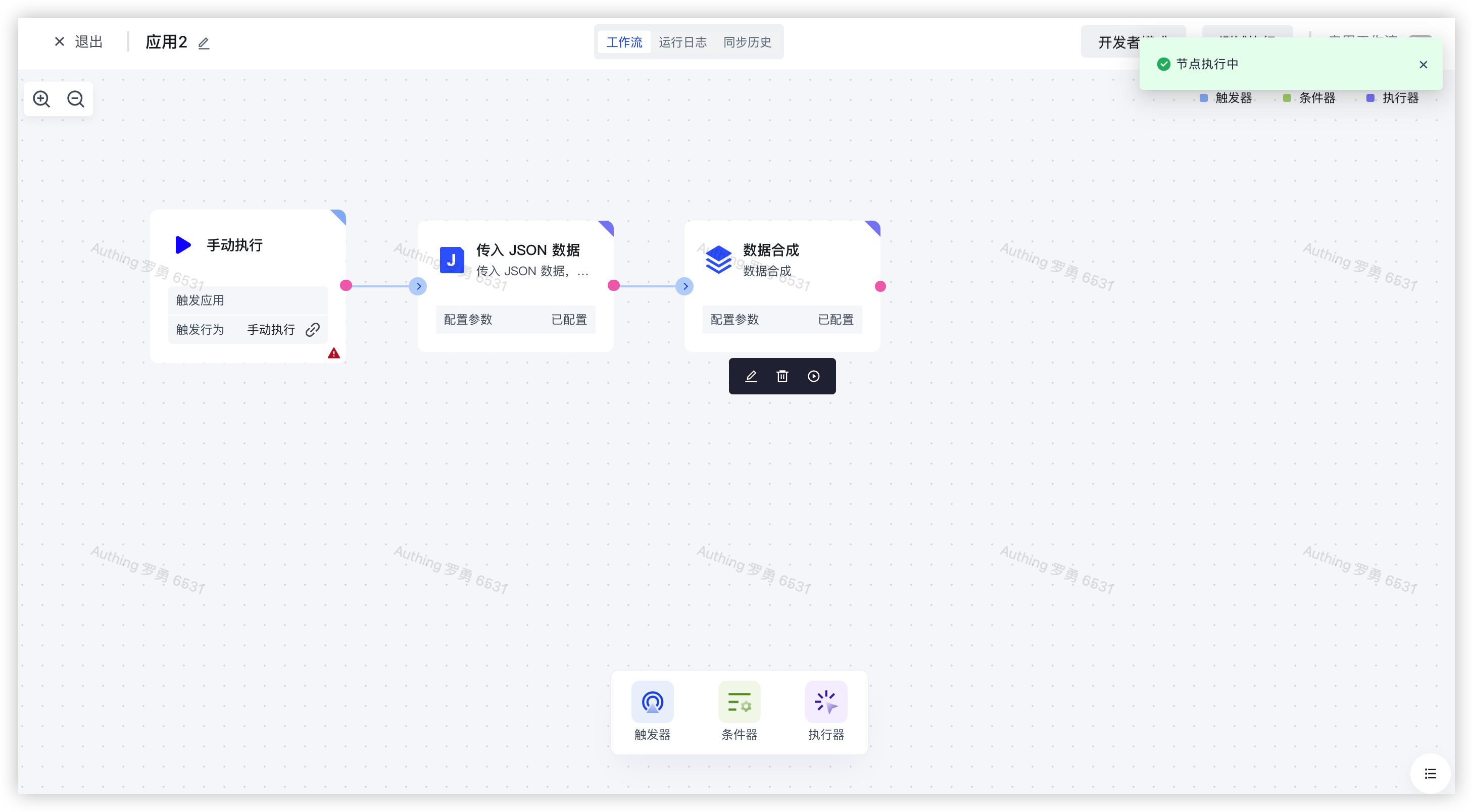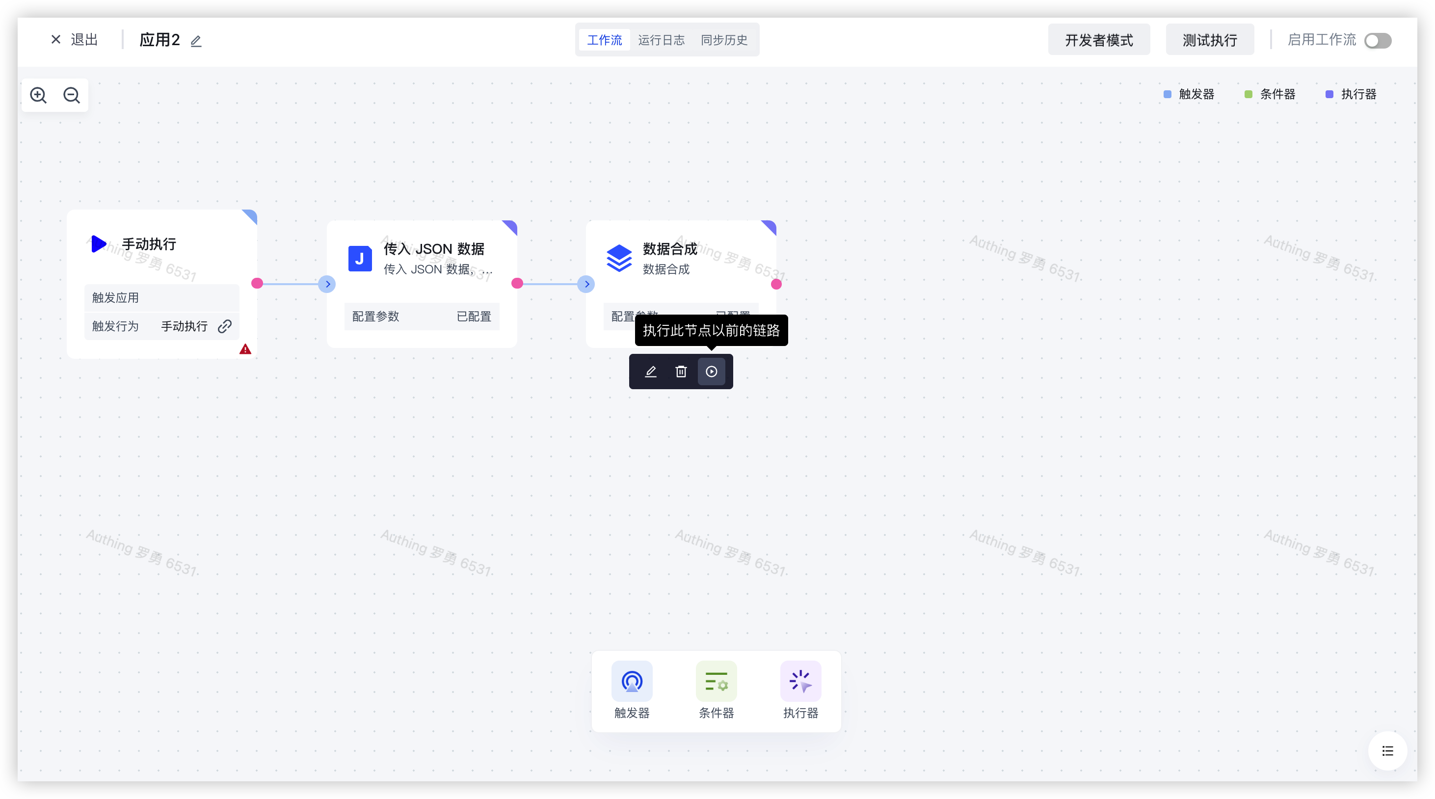 点击节点上的「执行此节点以前的链路」按钮,执行该节点。