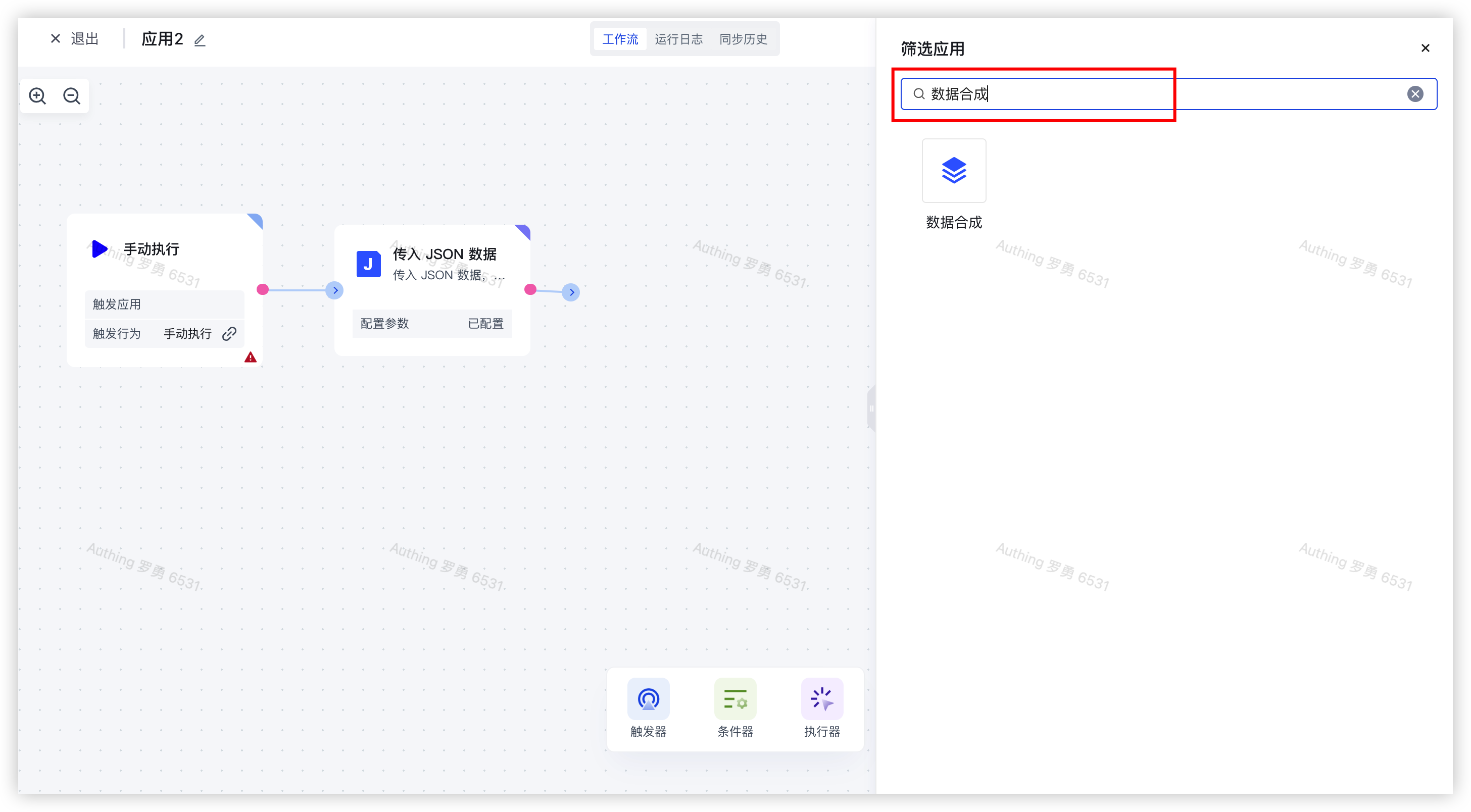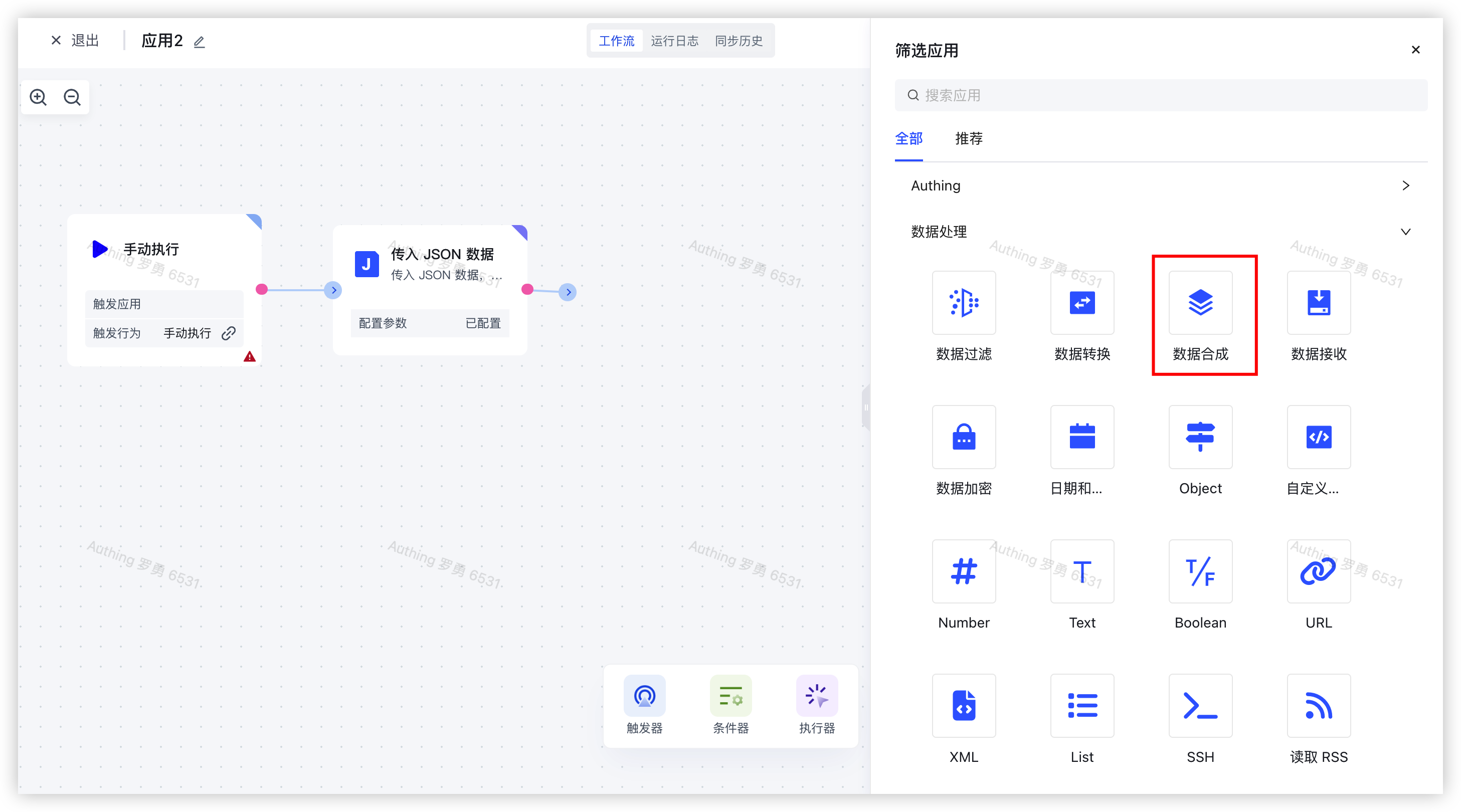 在添加节点页面,在「数据处理」分类中找到「数据合成」应用节点。