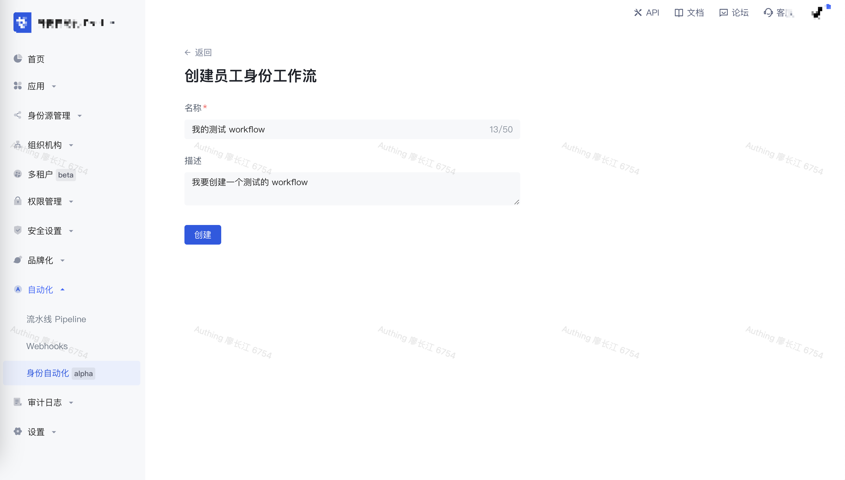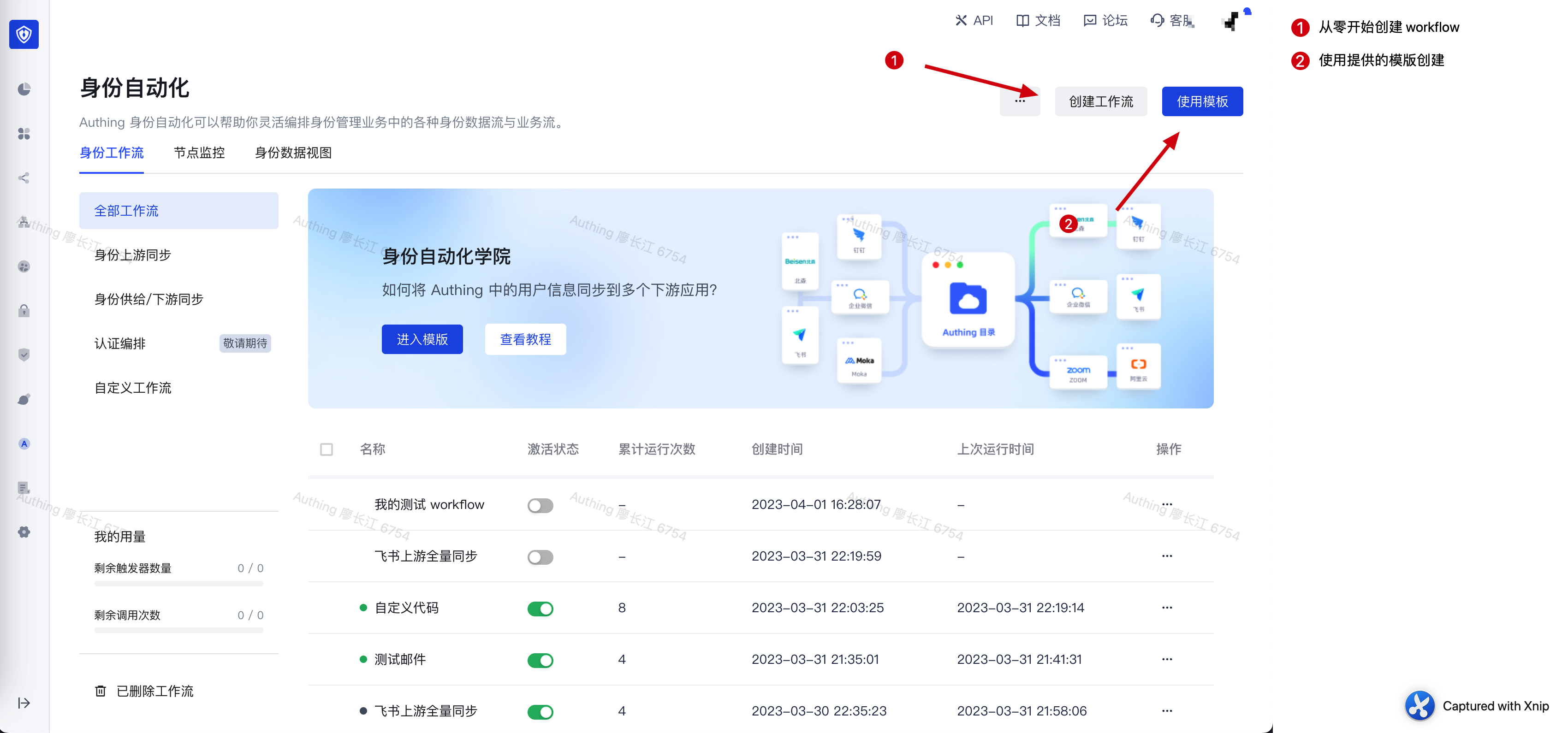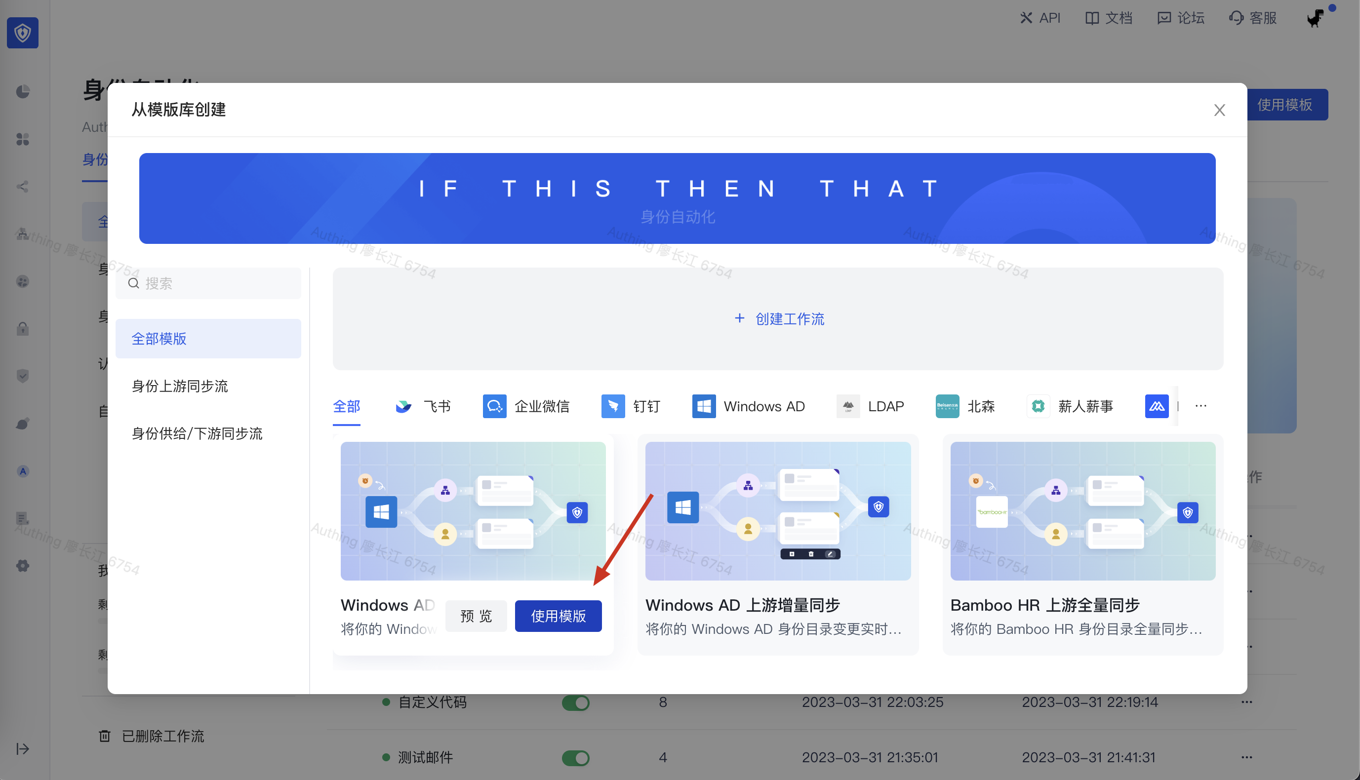 在 Authing 身份自动化的模版市场中,选择你想要创建的模版: