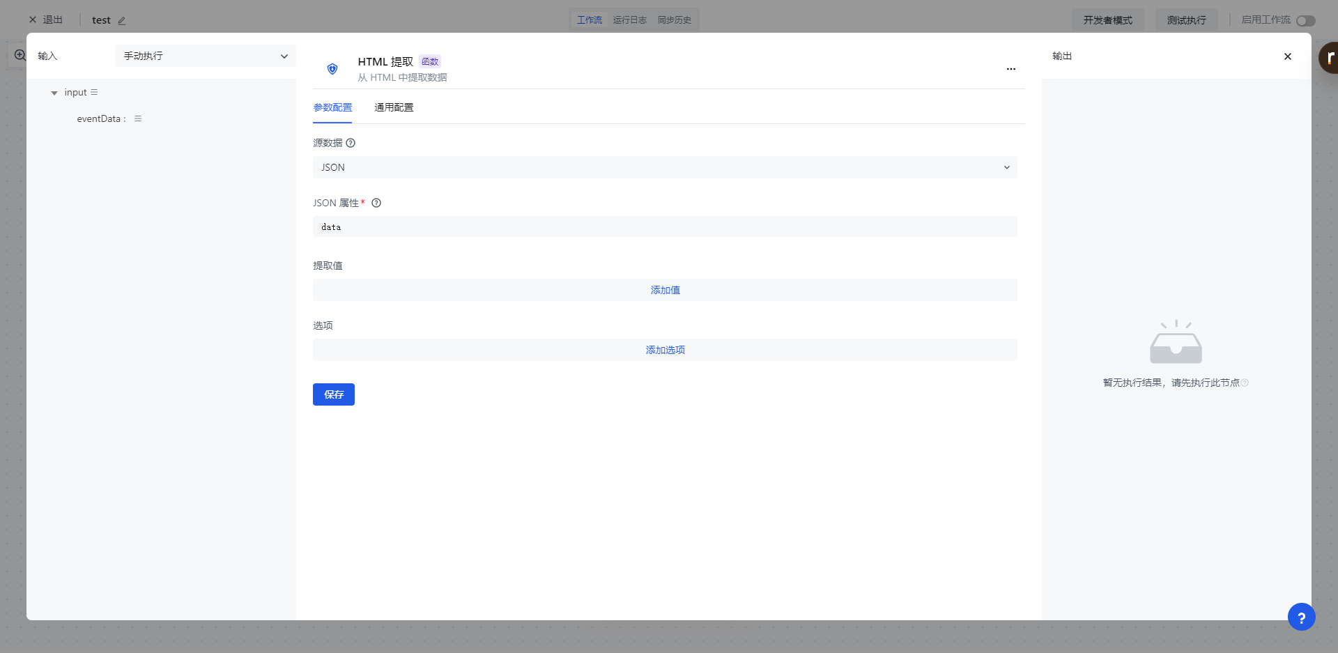 「HTML 提取」节点主要用于对数据中 HTML 中相关属性的提取。