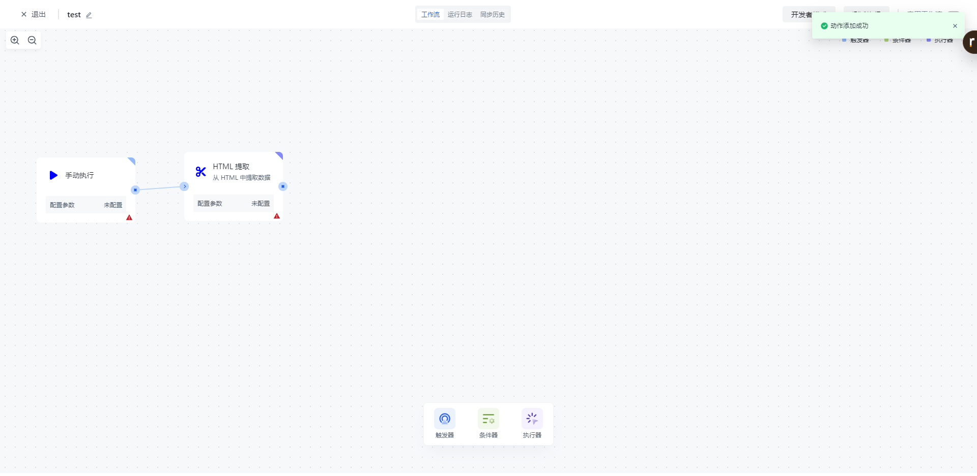 点击「运行日志」栏,依次点击最新的「执行批次」和「HTML 提取」节点左边的展开按钮,查看节点执行结果。