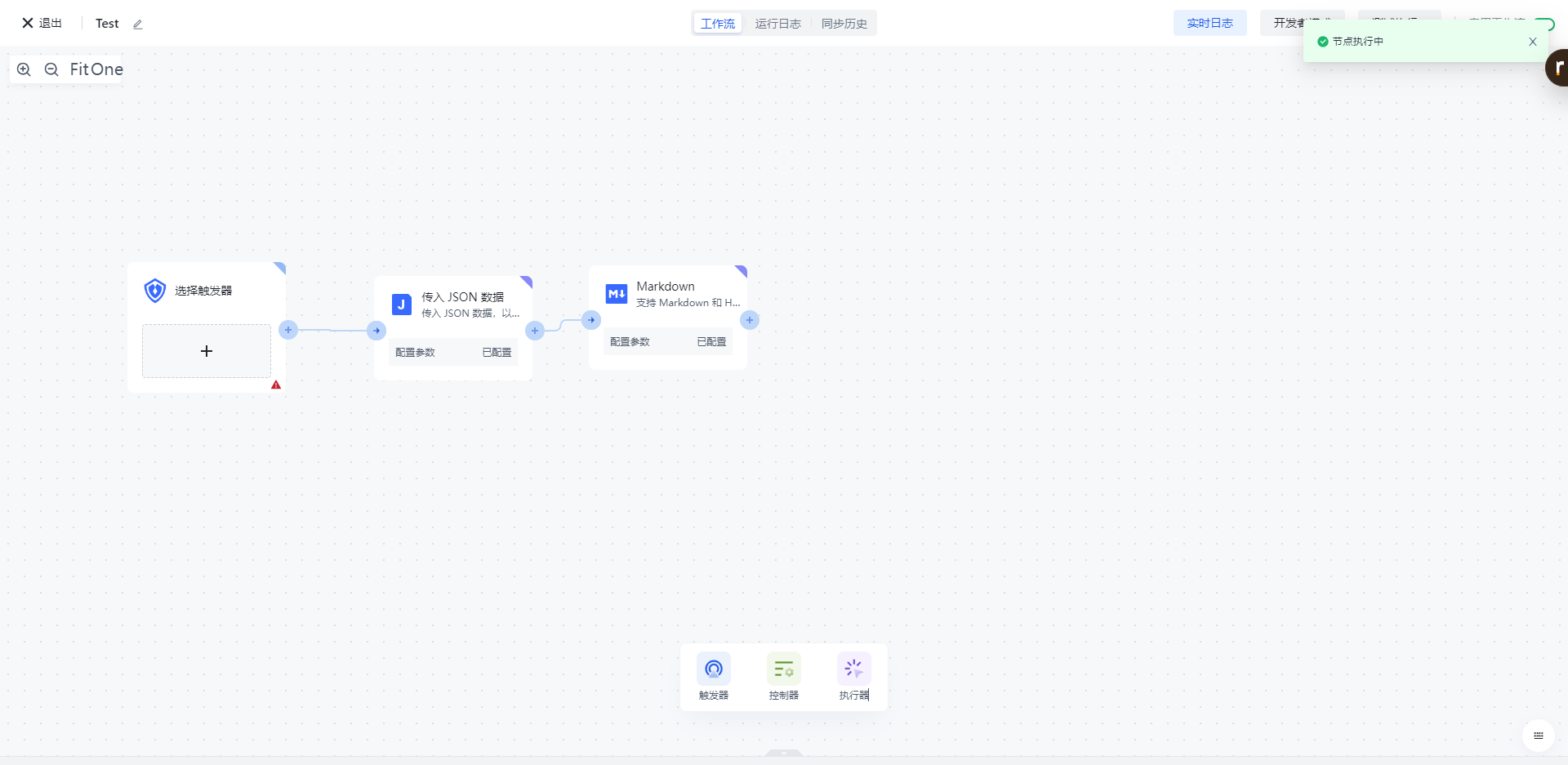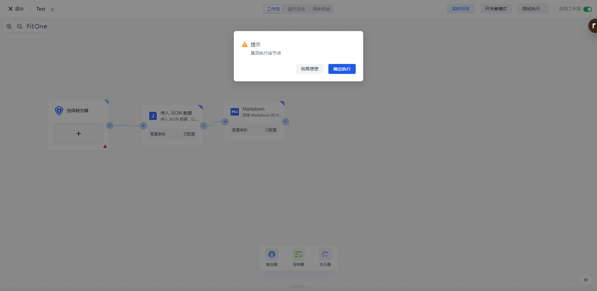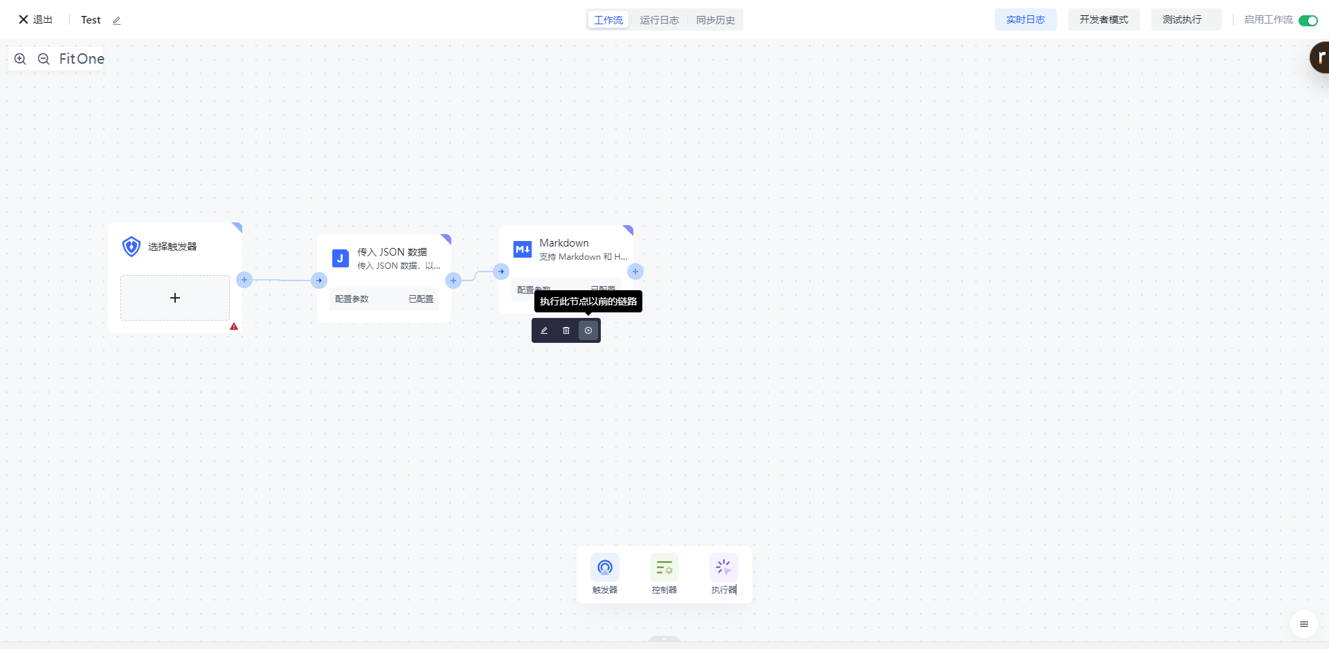 点击节点上的「执行此节点以前的链路」按钮,执行该节点。