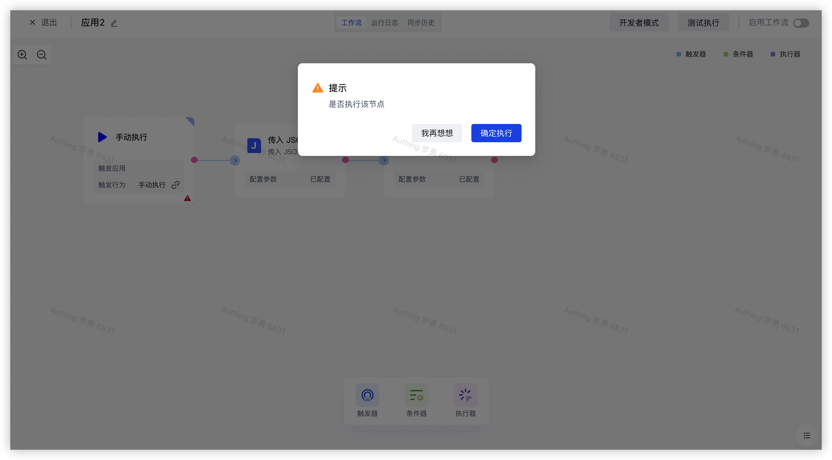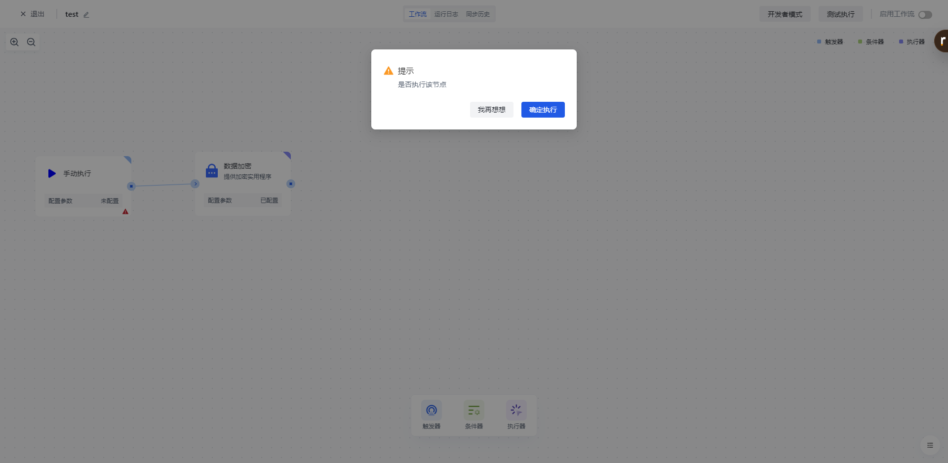 点击「确认执行」按钮之后,将会看到「节点执行中」的消息提示。