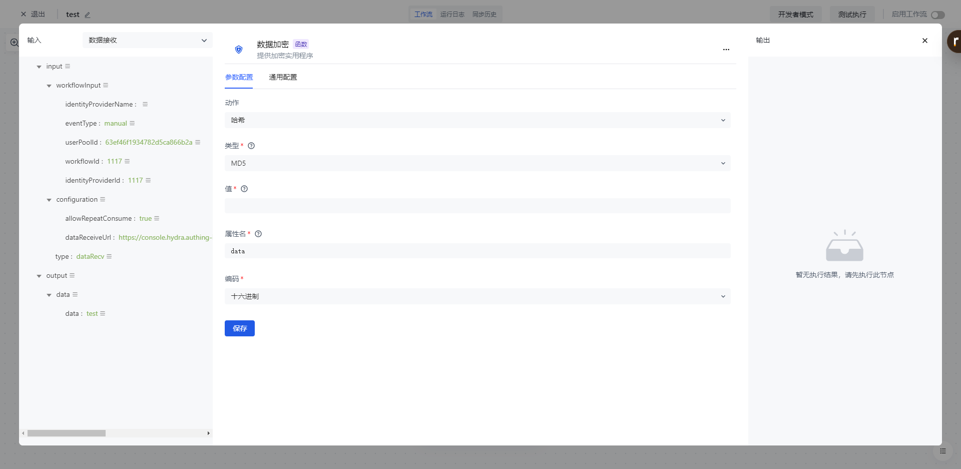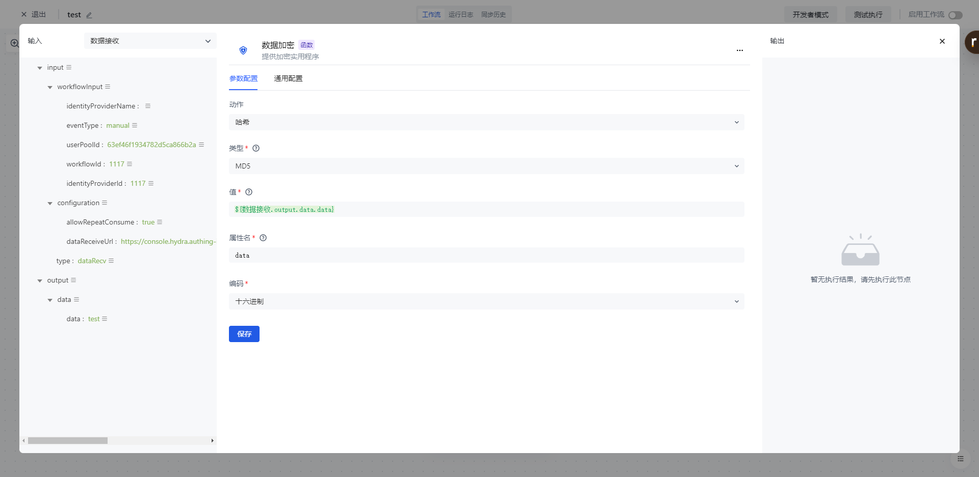 「数据加密」节点主要用于对数据源进行自定义加密。