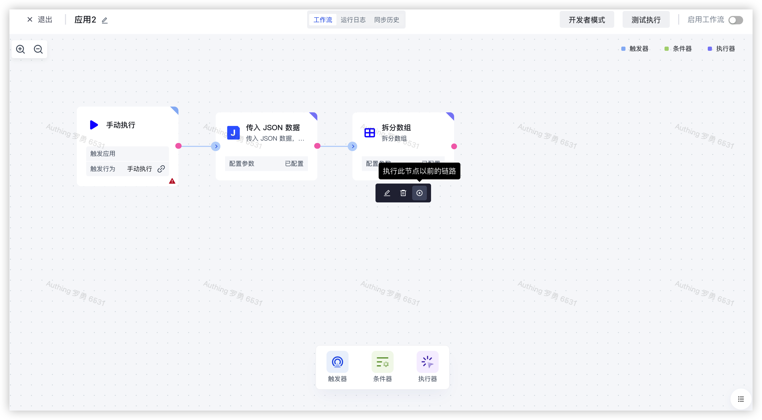 点击节点上的「执行此节点以前的链路」按钮,执行该节点。